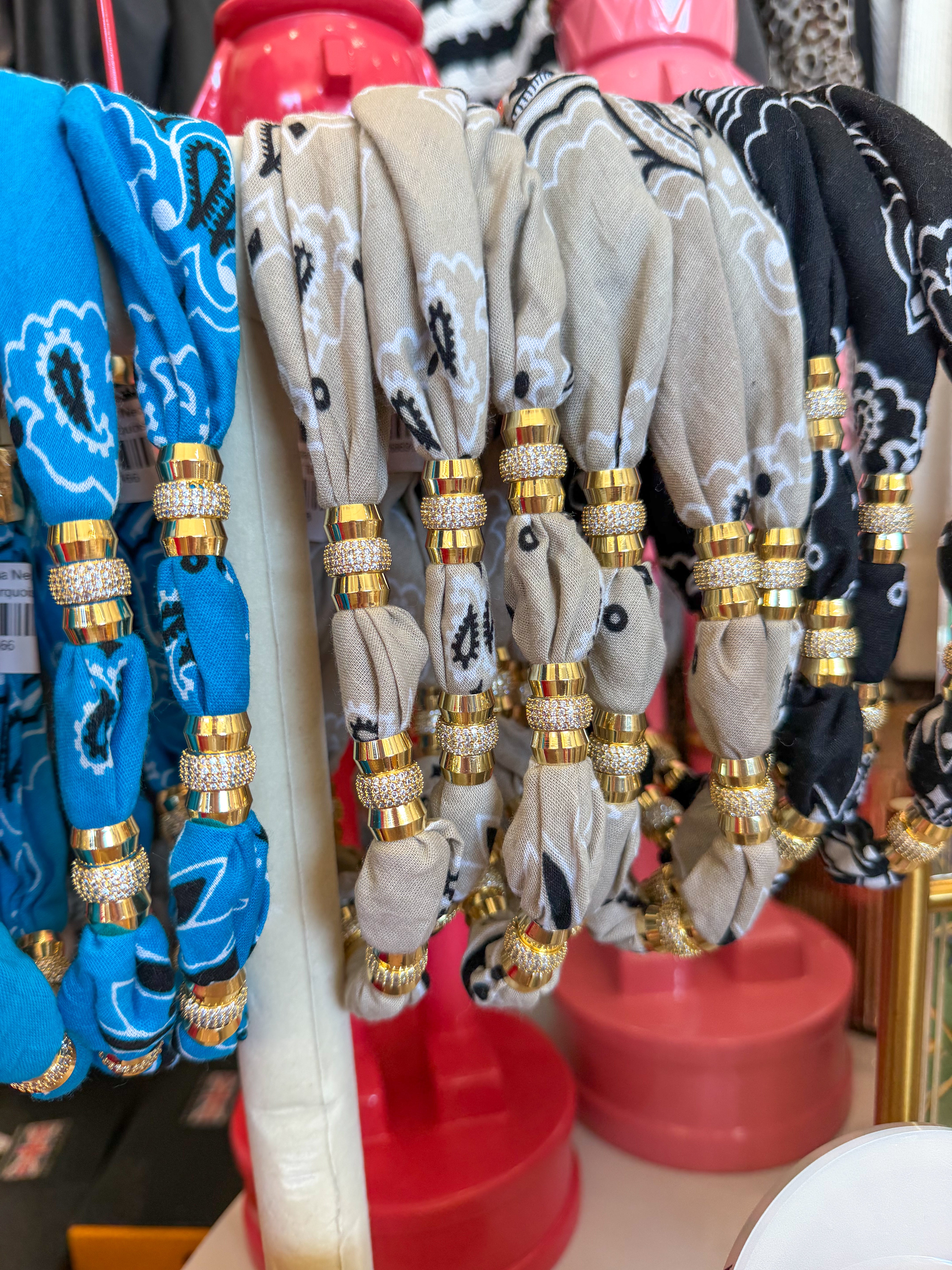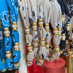 Elevate your look with a piece that’s got more attitude than your favorite denim jacket. The Magnetic Bandana Necklace blends classic Americana with modern luxury — soft hand-dyed cotton, sparkling gold accents, and that iconic bandana print that never misses.