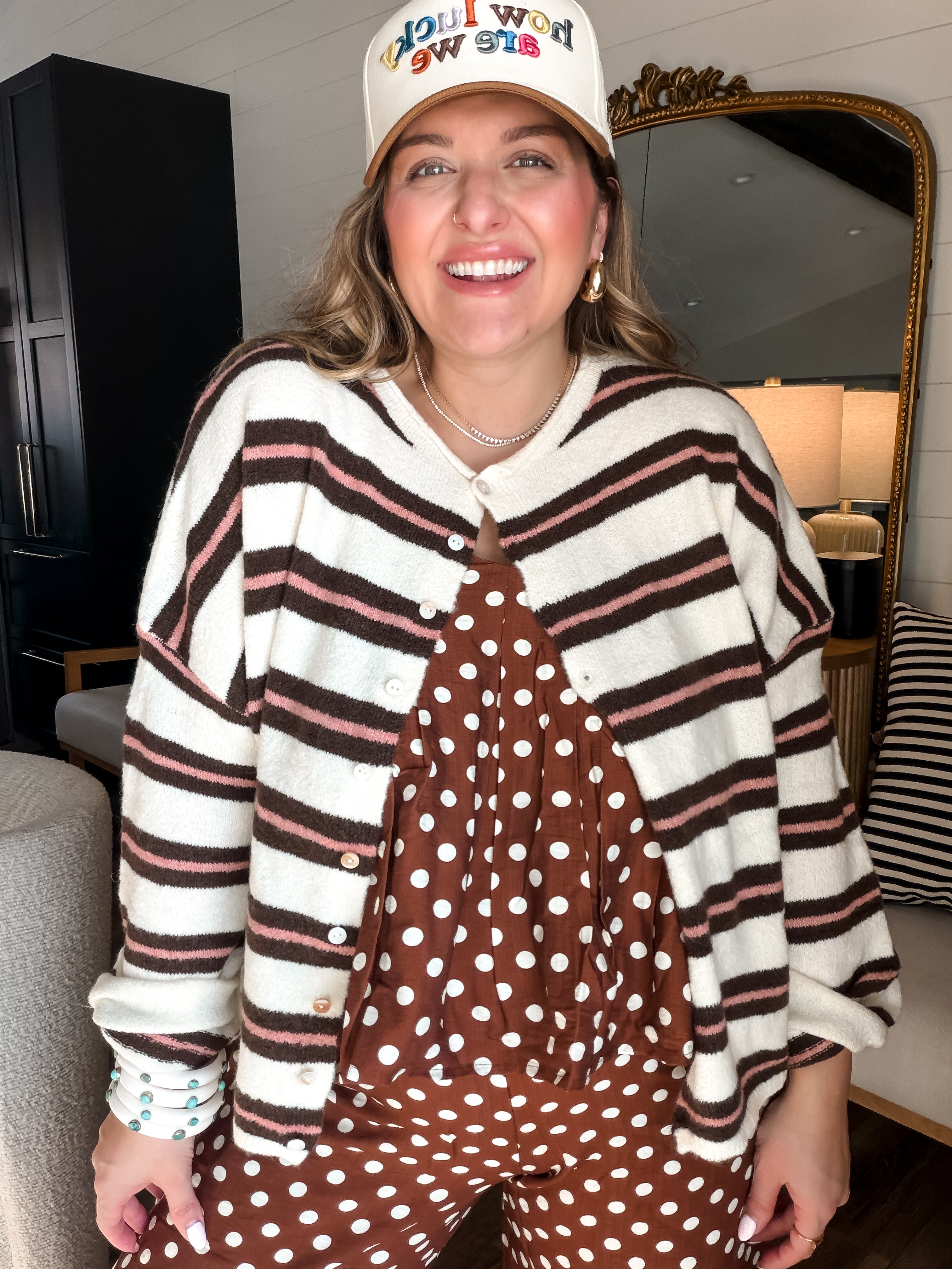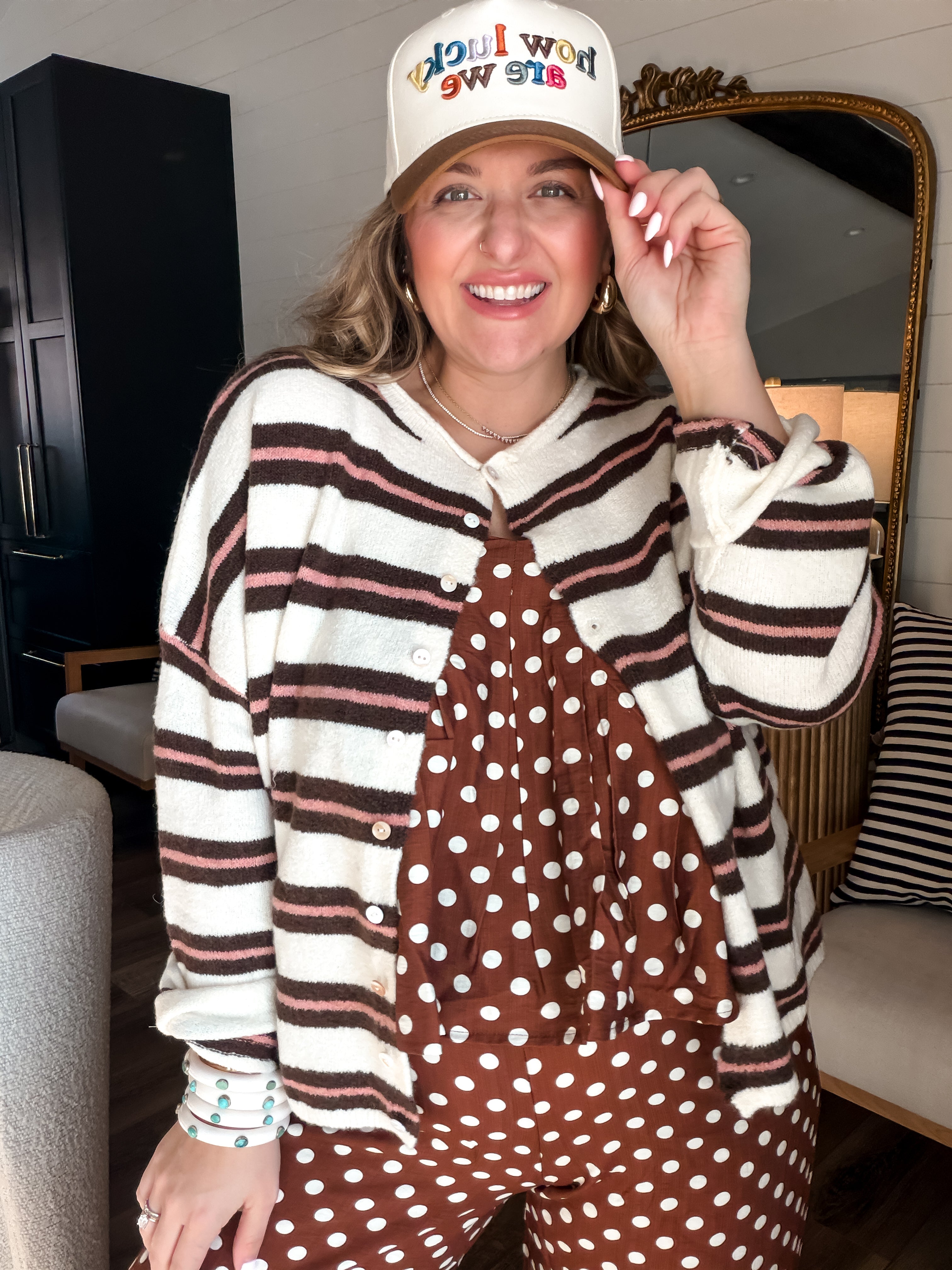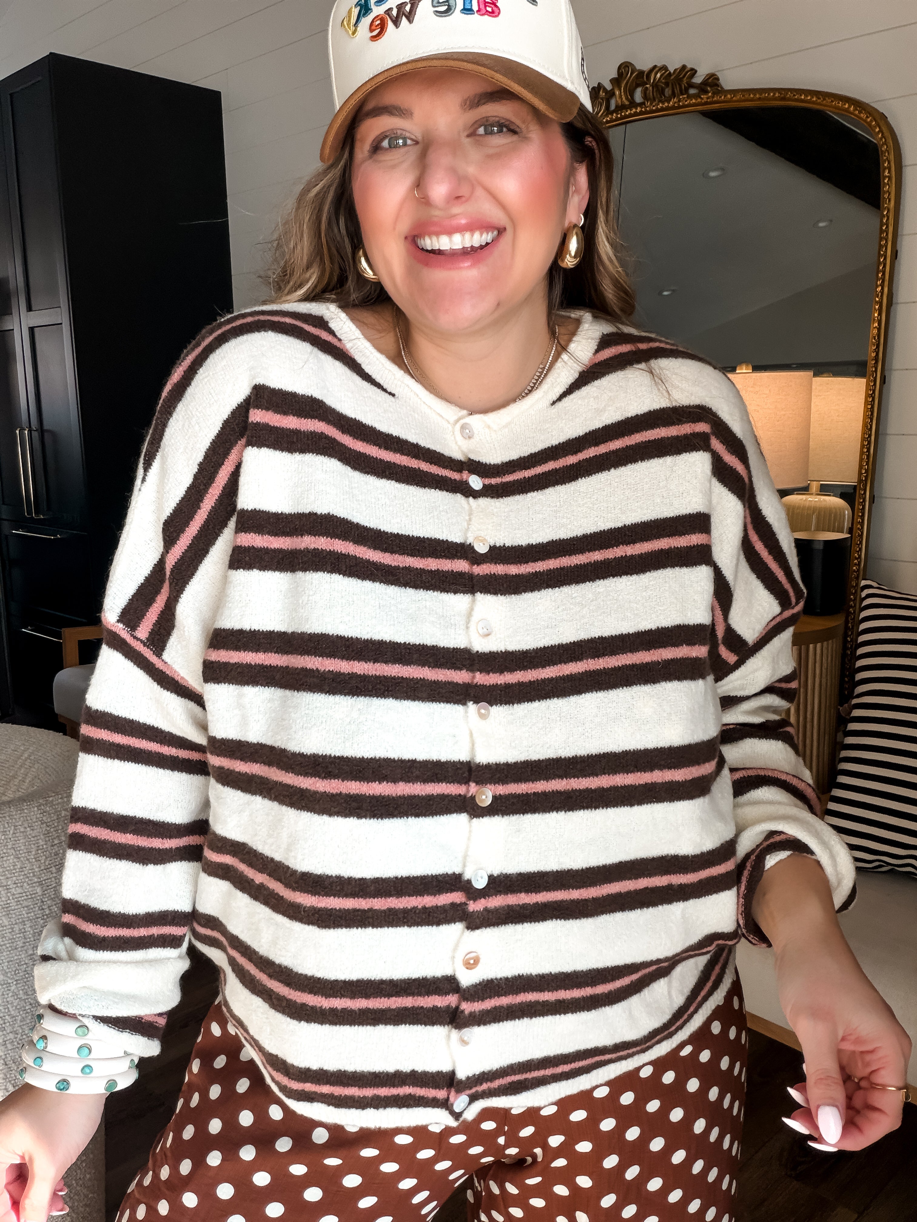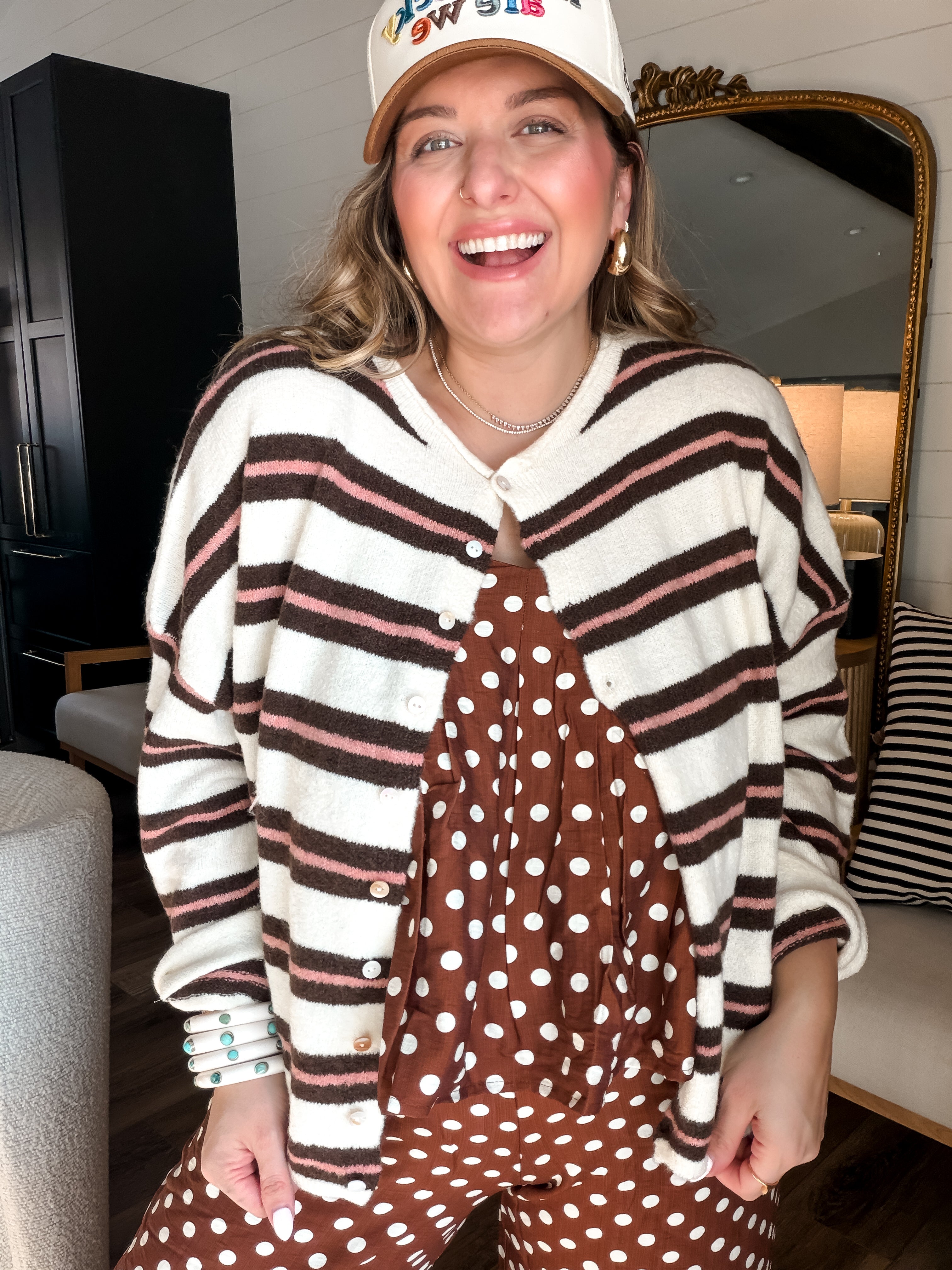 Wrap yourself in the warm embrace of our Piper Cardigan! With its pink and brown stripes, it’s perfect for cozying up or strutting your stuff—because who says you can’t be chic while binge-watching? Button up for style or leave it loose for that “I just rolled out of bed but still look fabulous” vibe!