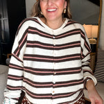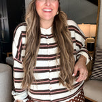 Piper Cardigan - Pink + Brown Stripes
