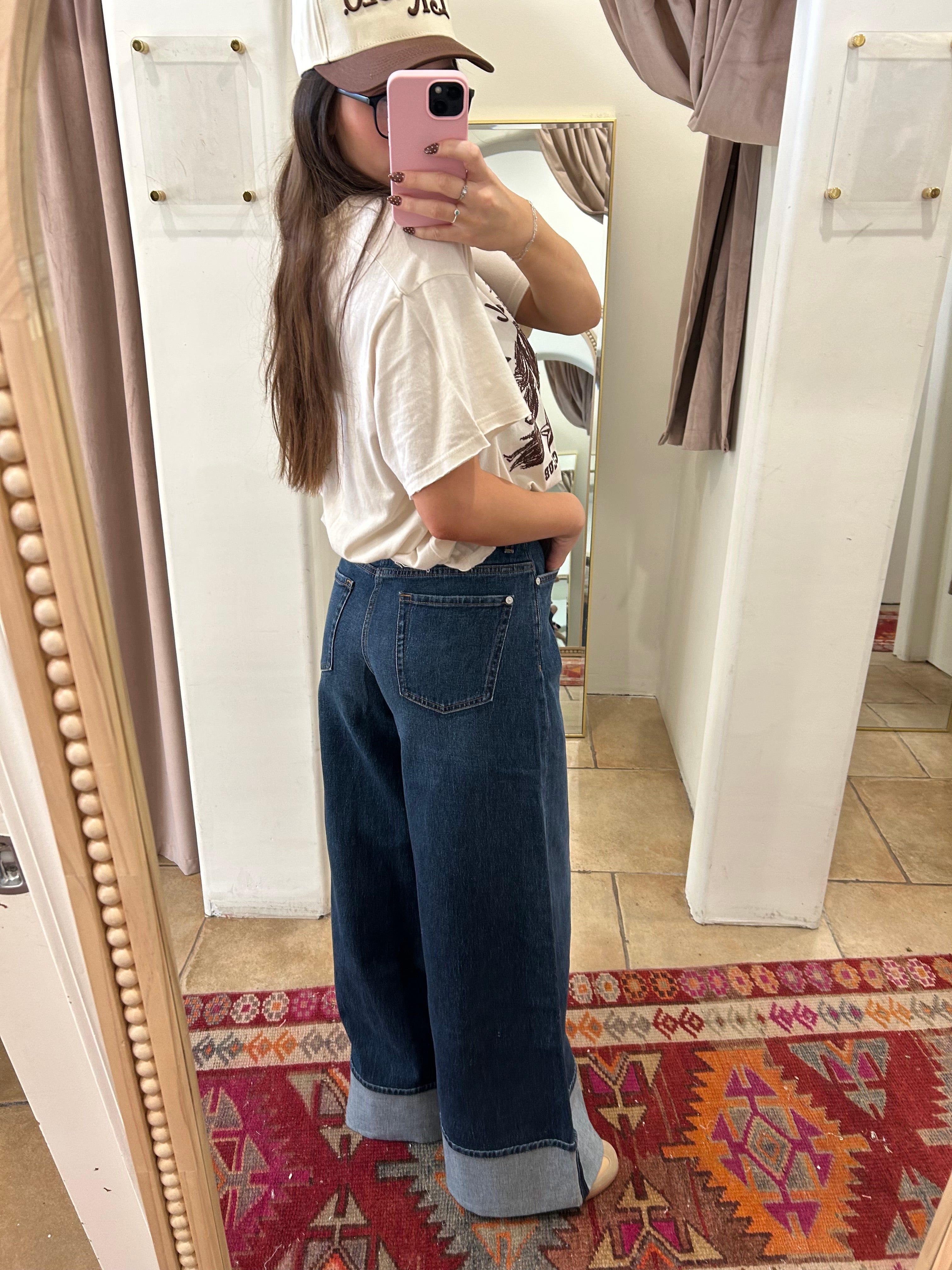 Fits like: A full-length, wide leg fit that drapes effortlessly through the leg, finished with a cuffed hem for a clean, tailored finish.