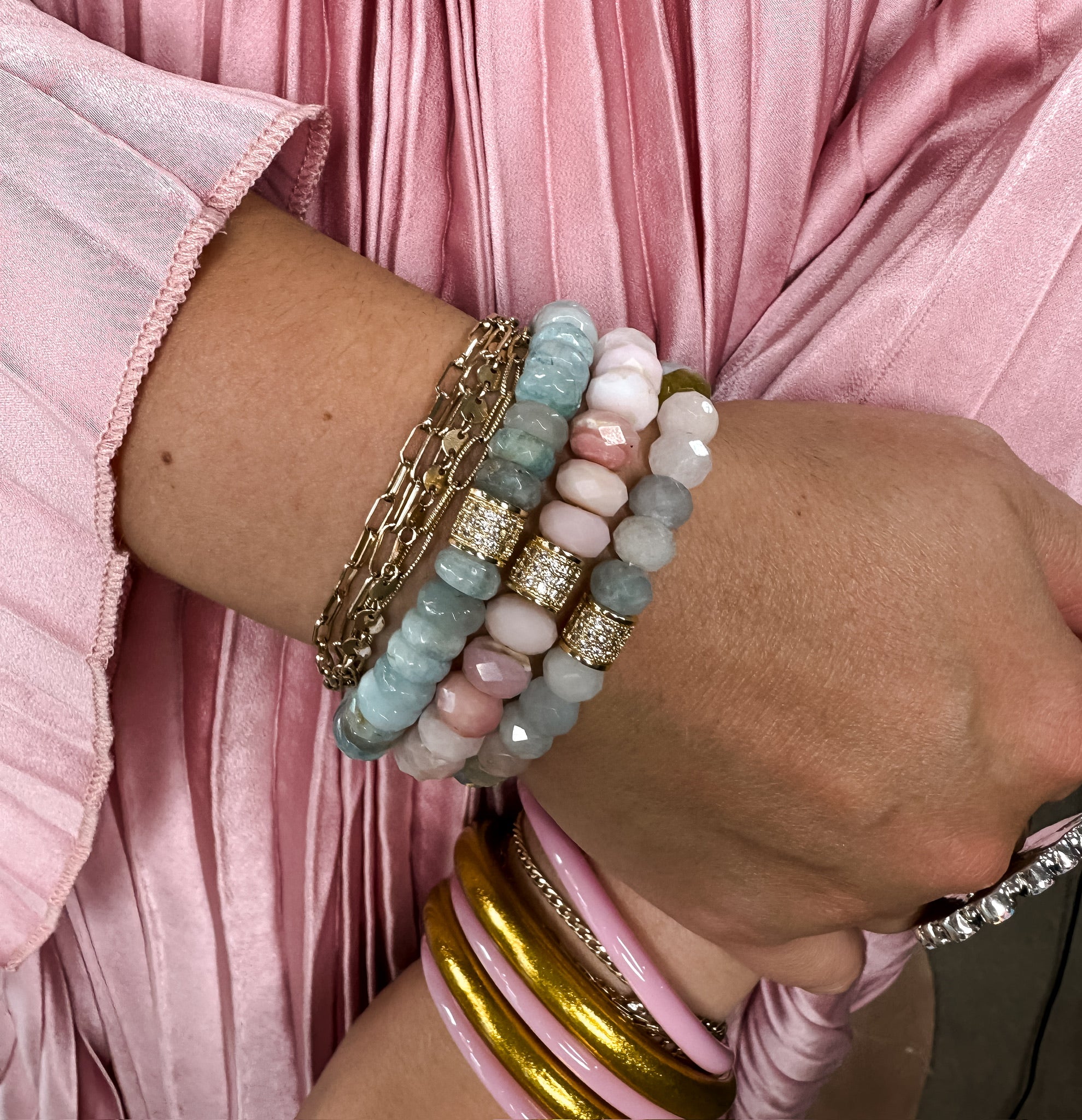 This Martini Bracelet is the best accessory you'll ever have! Made with agate, opal, and quartz, this neutral stretch bracelet is sure to catch the eye of your customers.