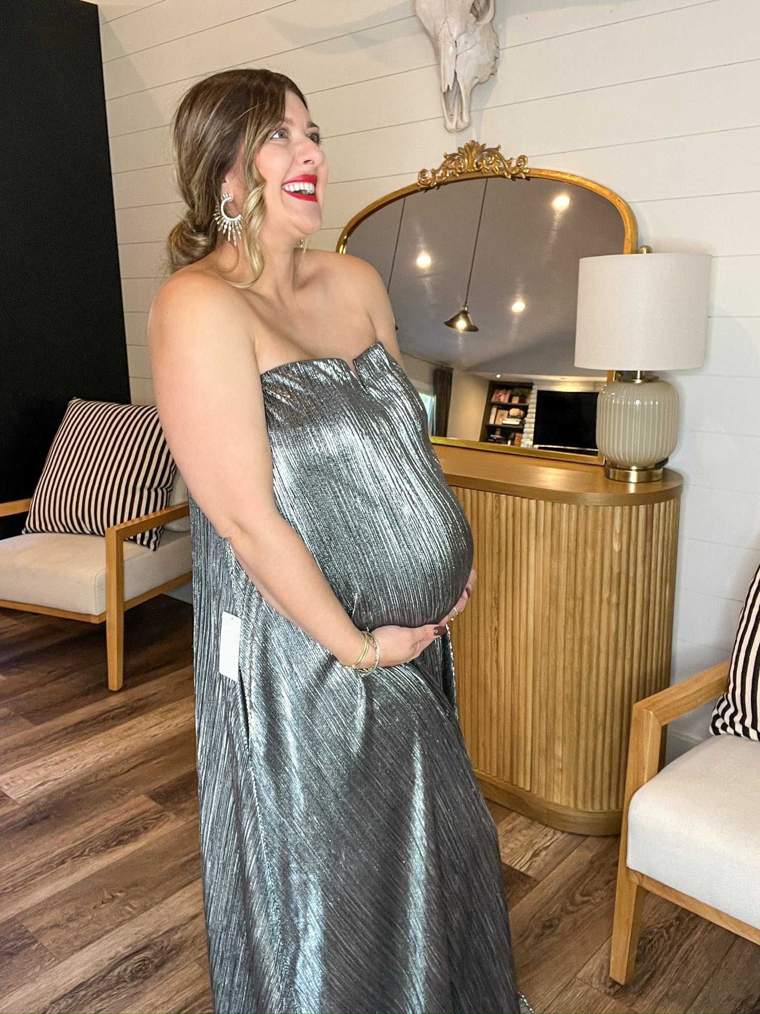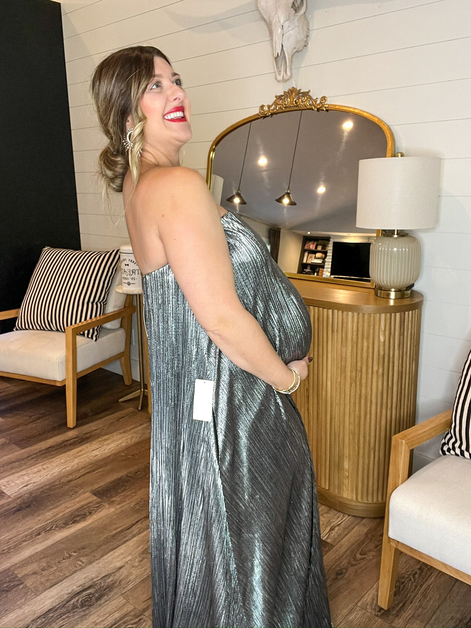 Out of stock{Mumu} Athena Maxi Dress - Pleated Silver