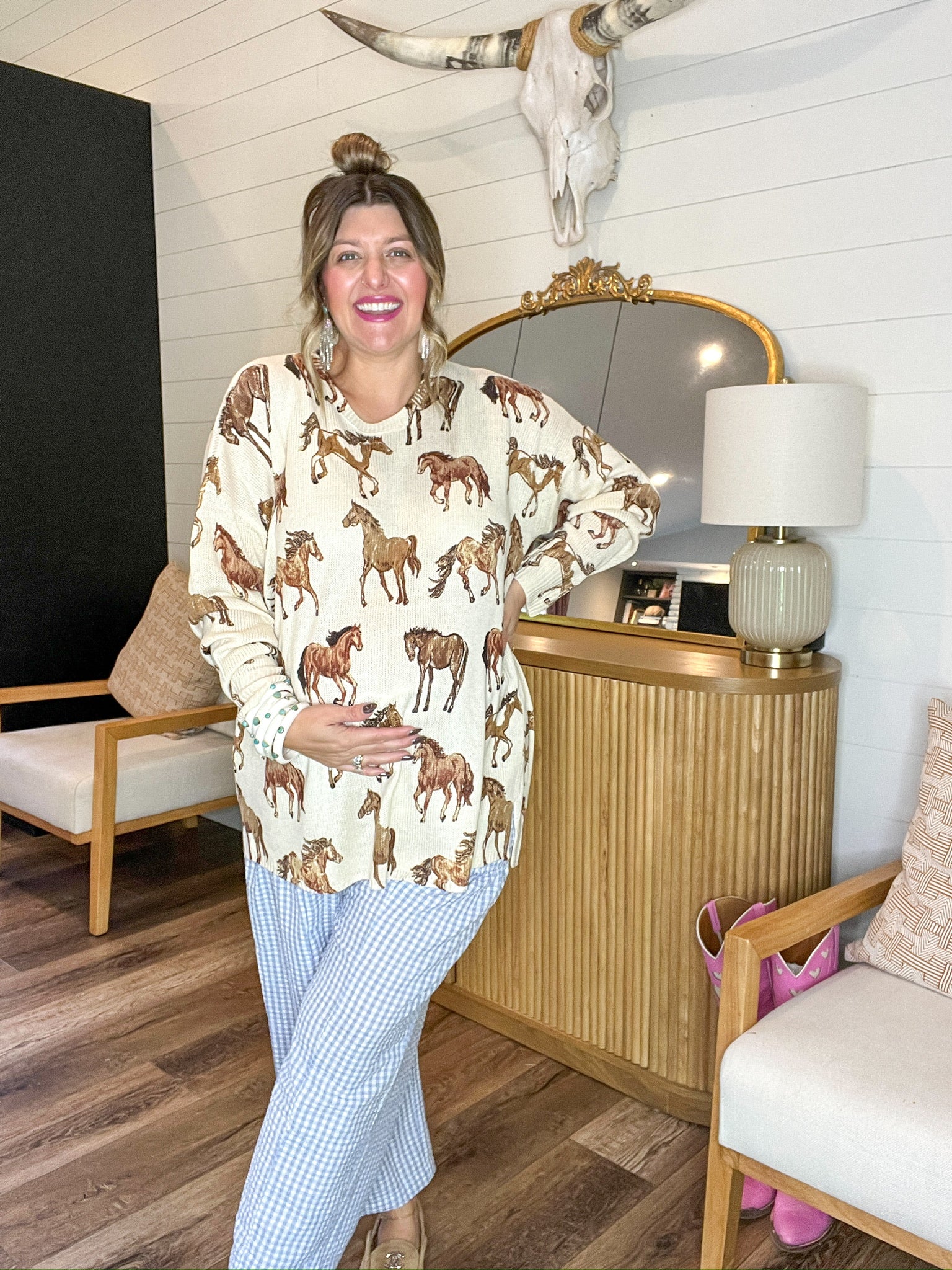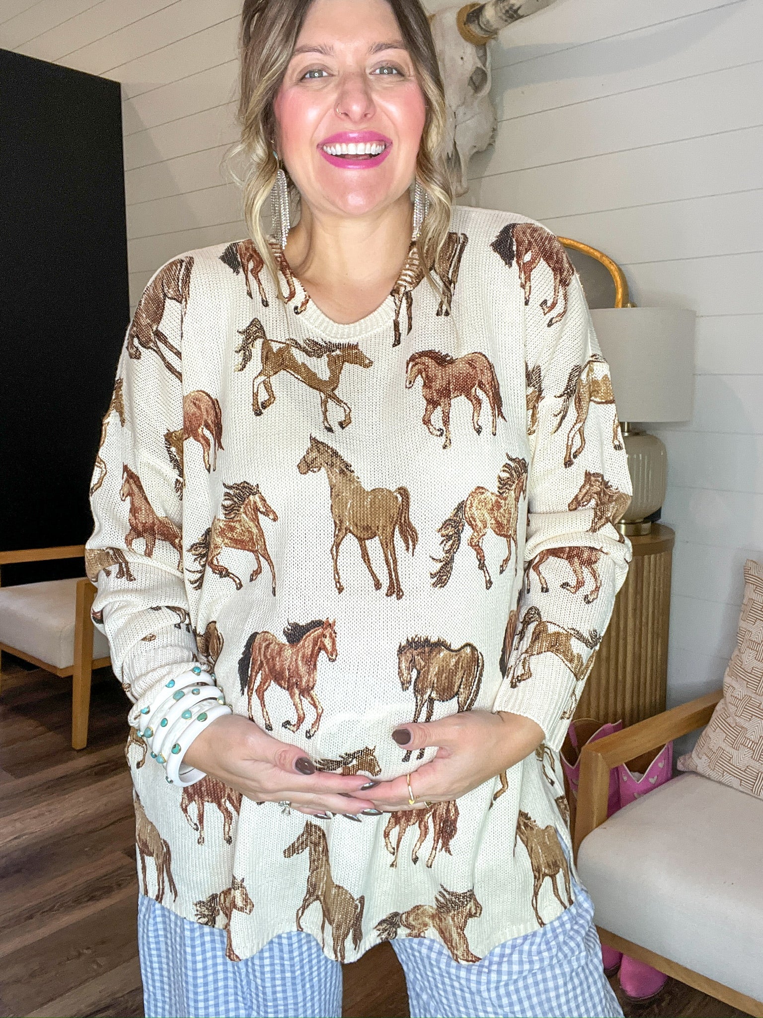 • Statement horse print that gives off major prairie meets cozy cabin energy