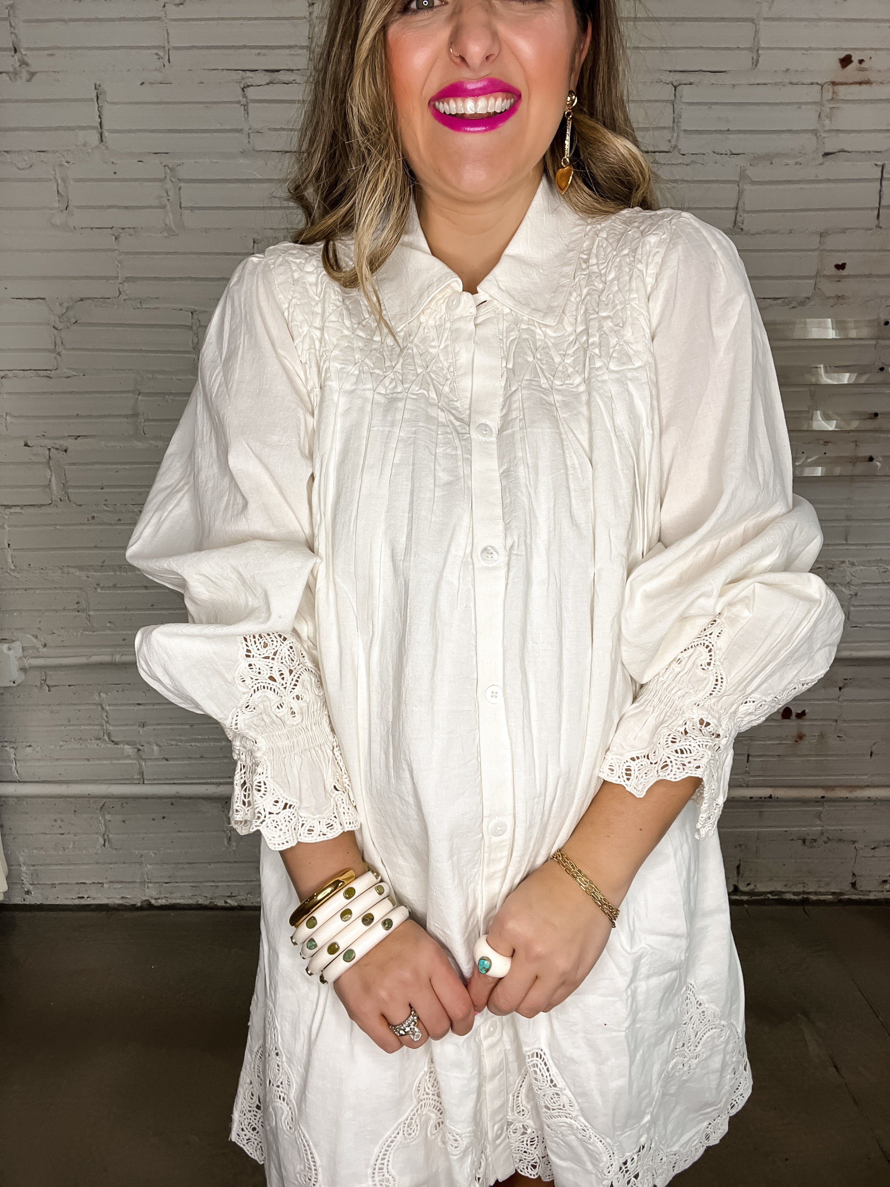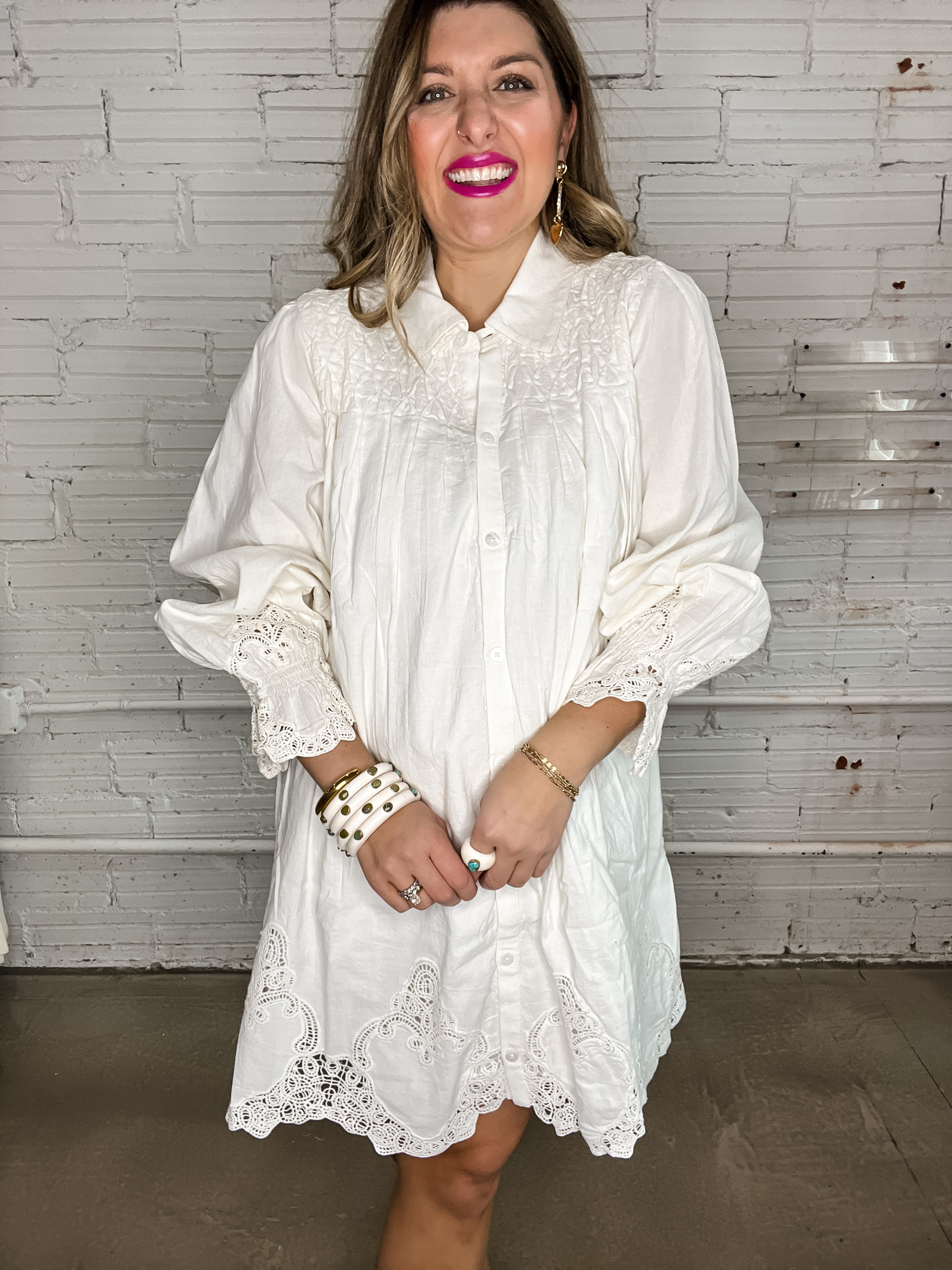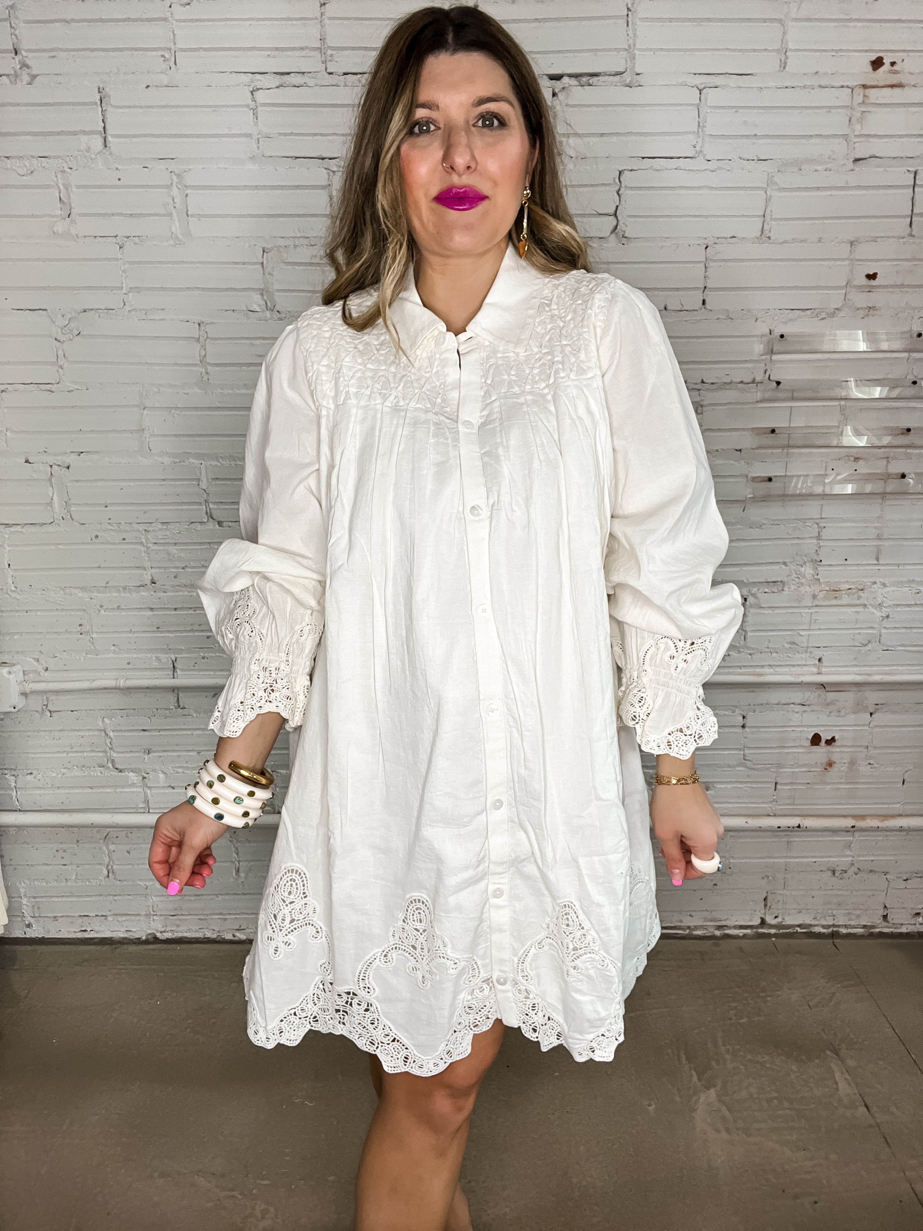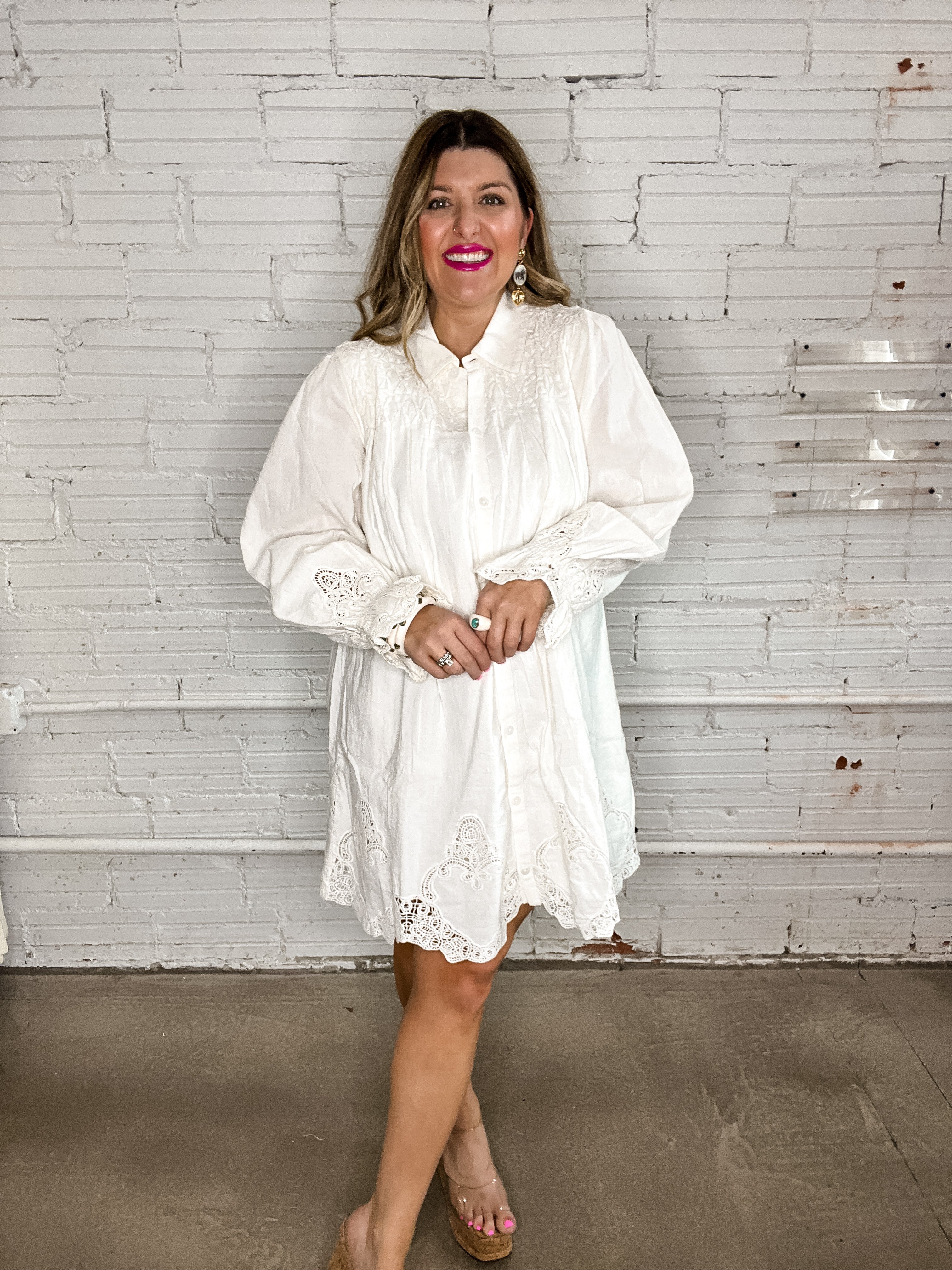 Out of stock{Mumu} Leona Mini Dress - White Lace Embroidery