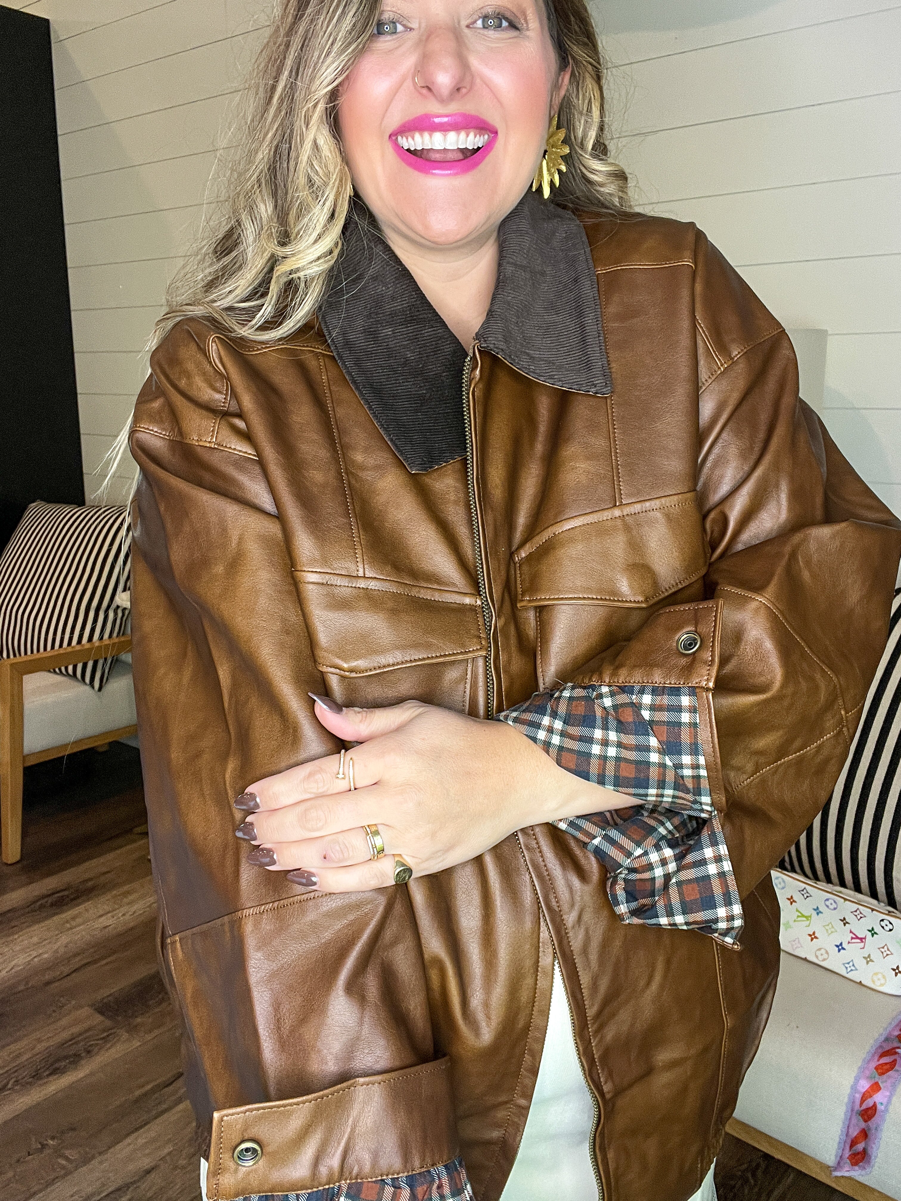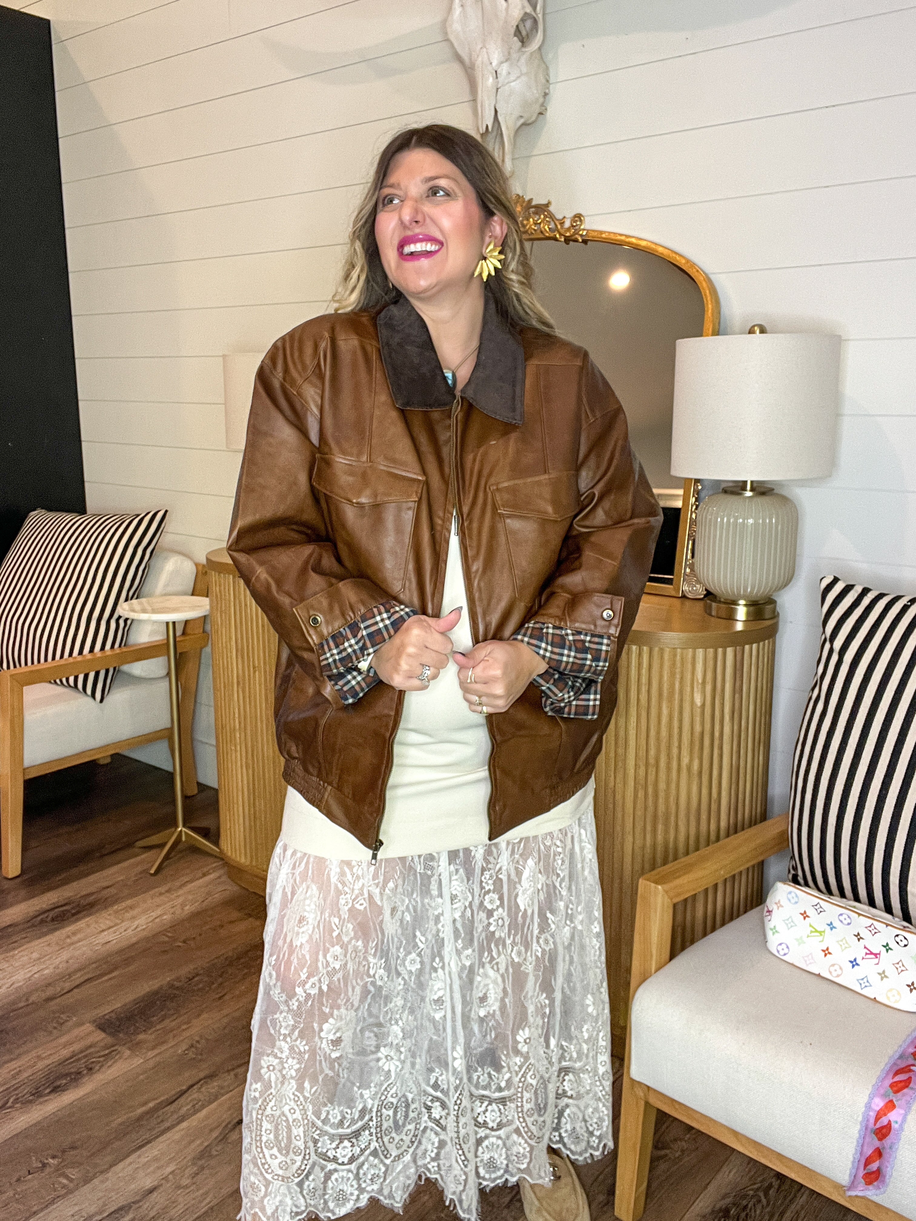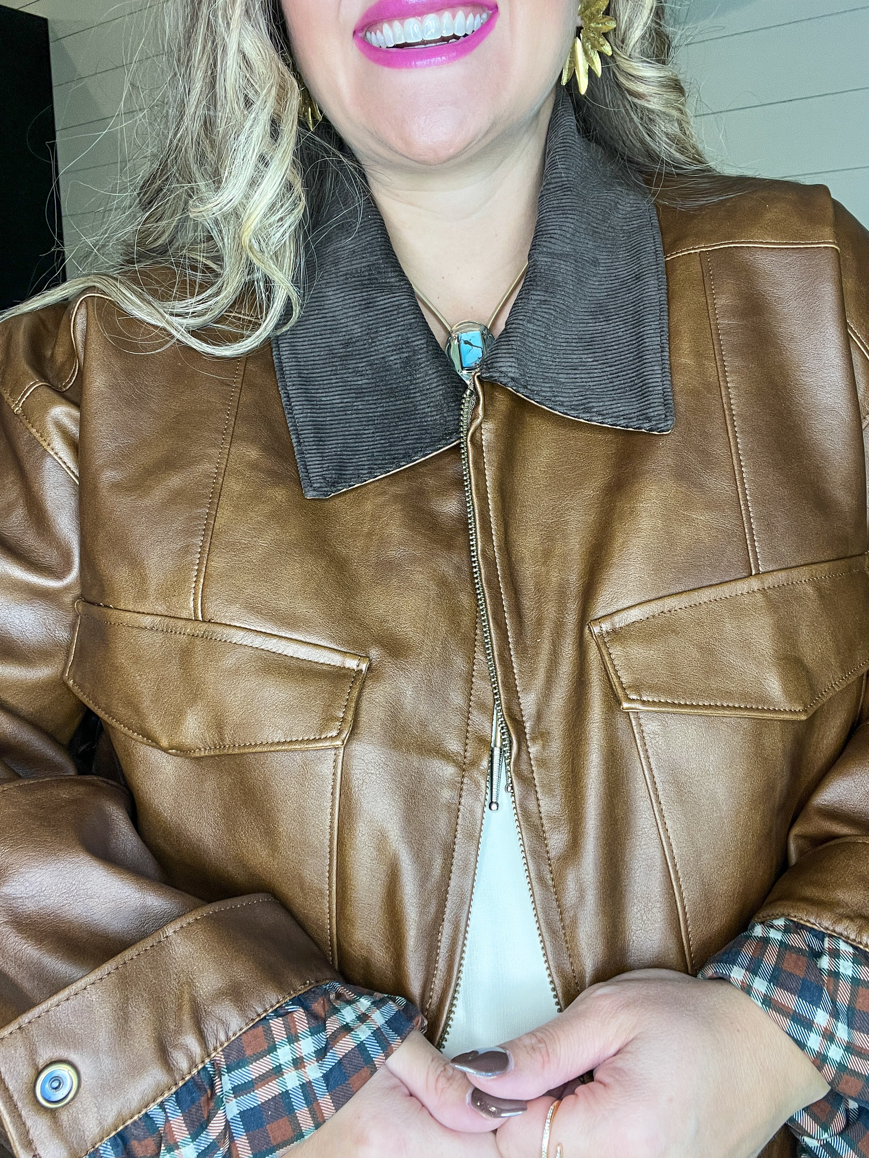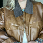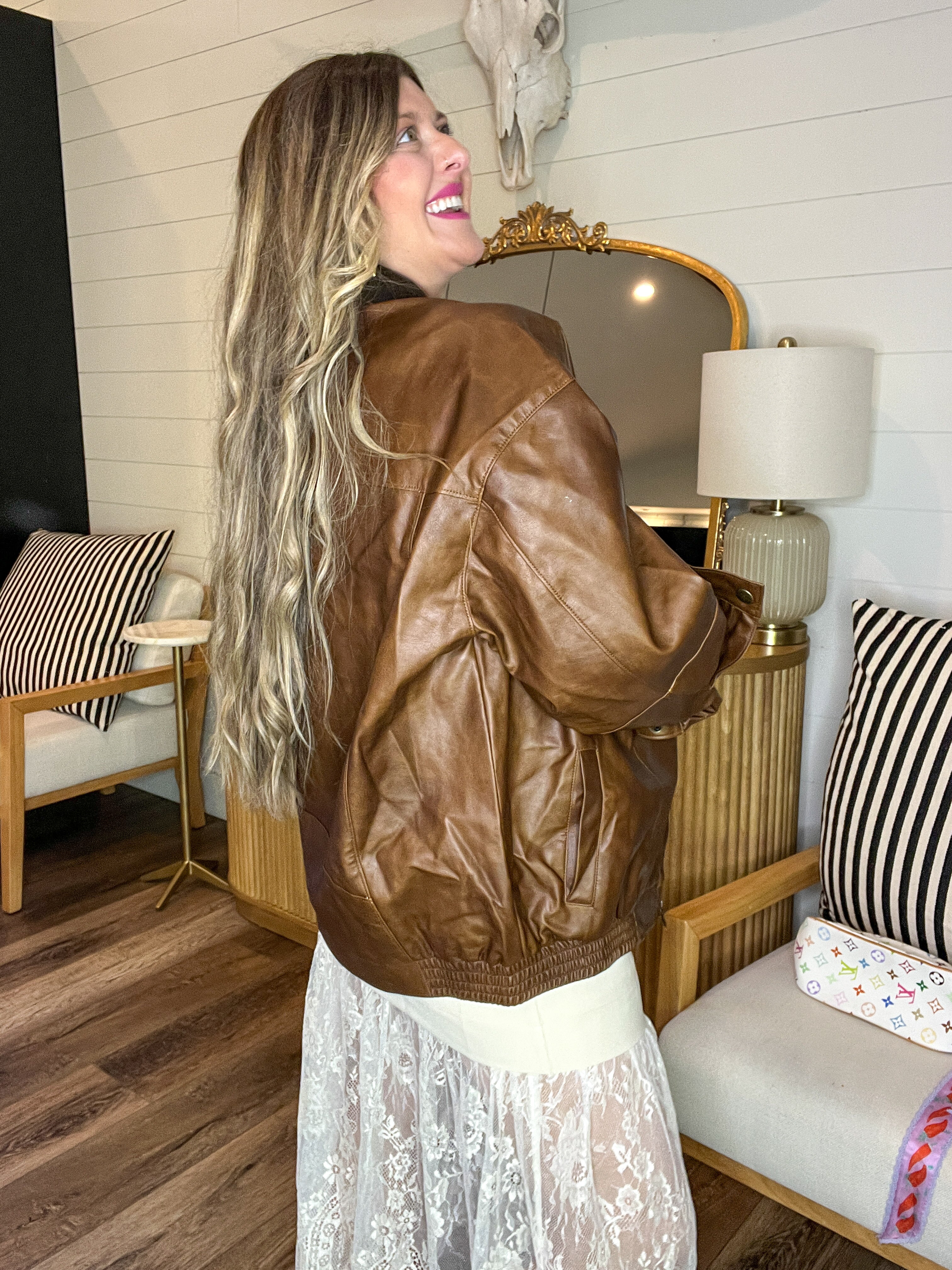 Out of stock{MUMU} Maverick Bomber Jacket - Chestnut Brown Faux Leather