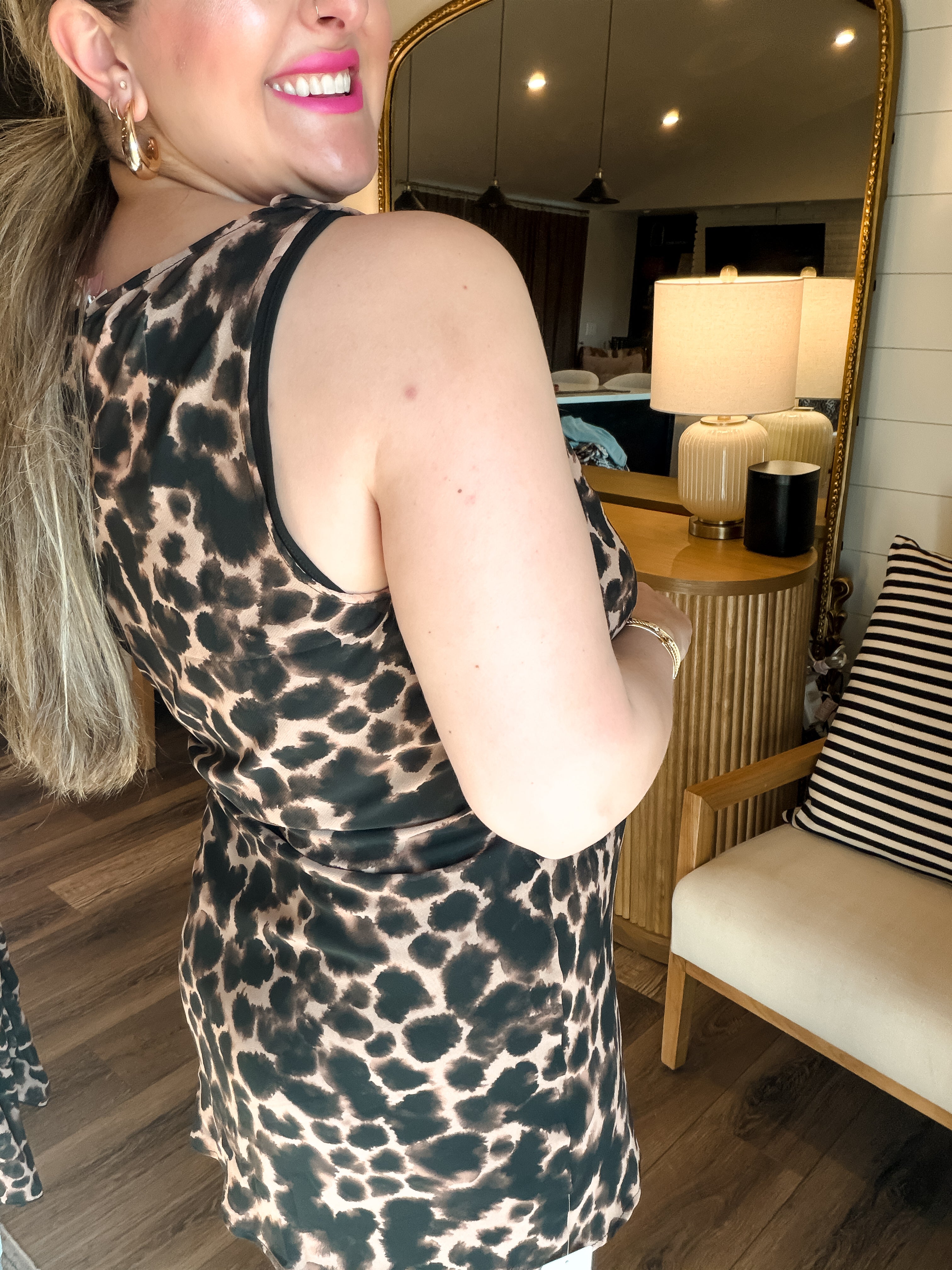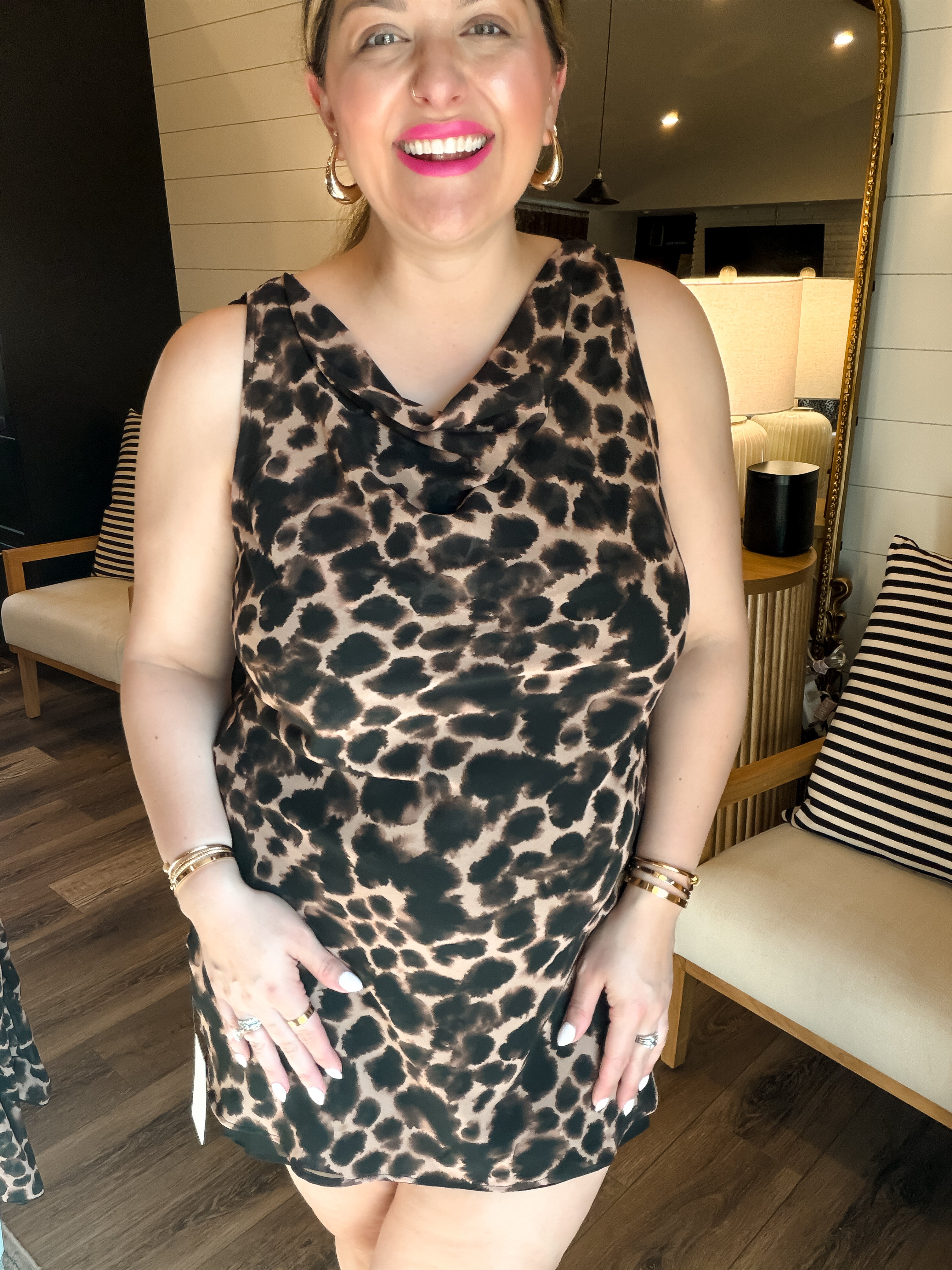 Designed for wherever you’re headed next, the Nomad Mini features a draped neckline, a figure-skimming fit, and a playful tortoise print. The removable slip lining lets you wear it lined or take it off for a sheer moment. Made for vacation days and nights away, just add sandals and you’re out the door!