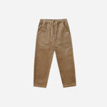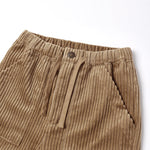 The Oliver Pant, crafted from soft stretch corduroy, features an elastic waistband with an adjustable drawstring and functional utility pockets for everyday use.