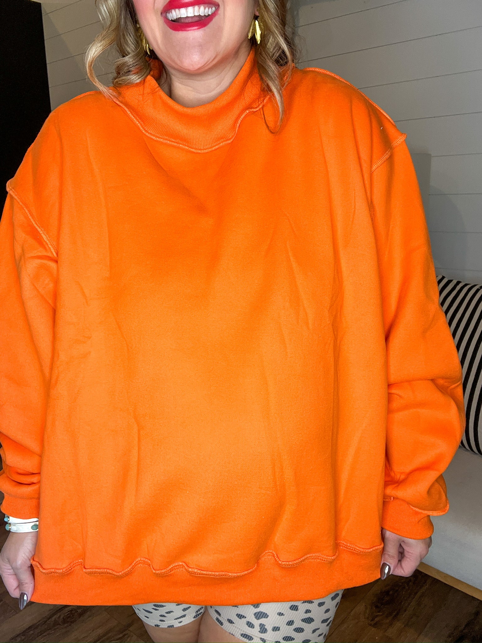 Fall called—it wants its new favorite sweatshirt back. This spicy little number flips between smooth and raw-seamed, giving you two moods in one pumpkin-perfect layer. The bold orange hue is begging for tailgates, bonfires, or just a dramatic coffee run. Cozy enough to live in, eye-catching enough to turn heads.
