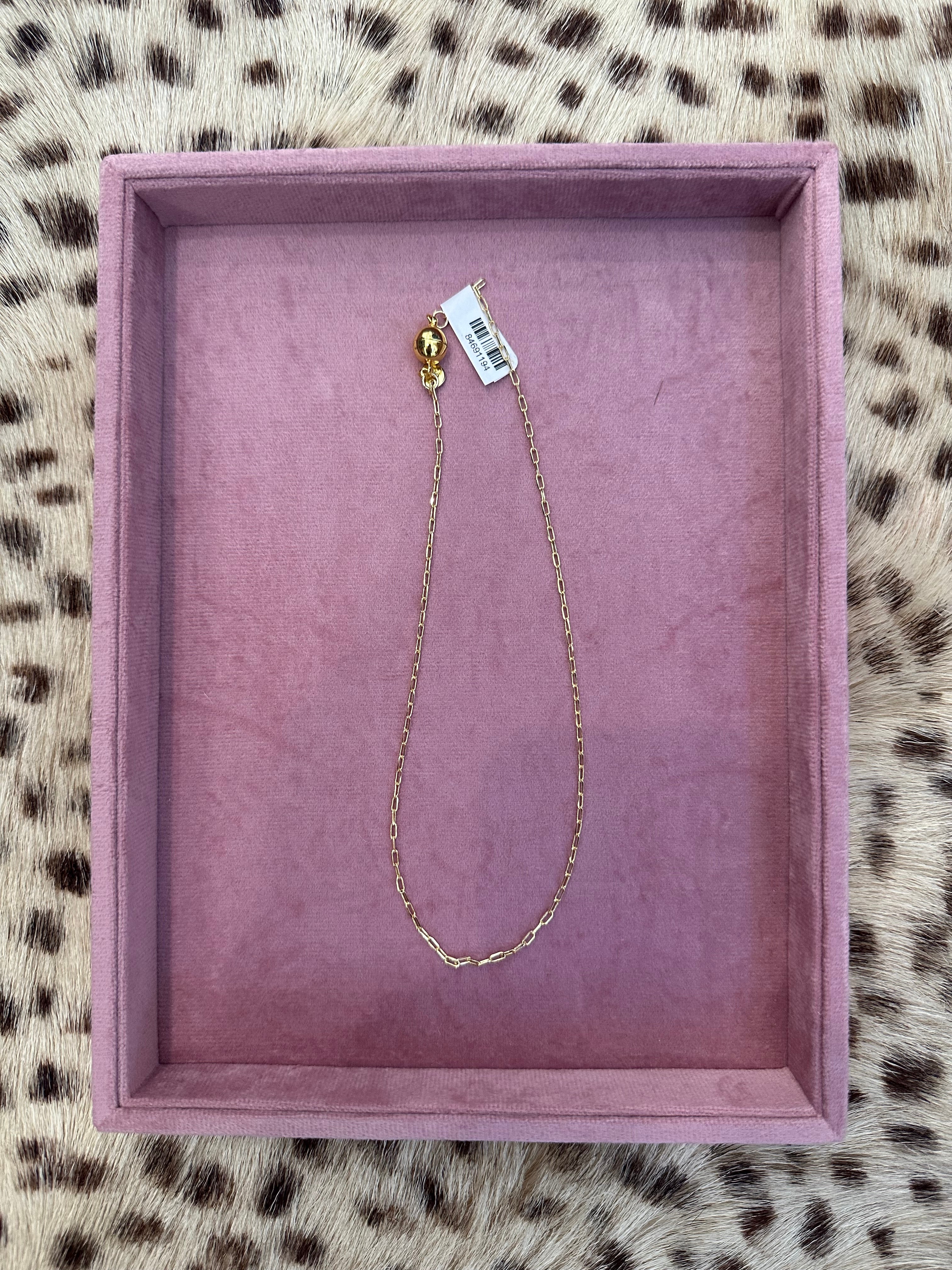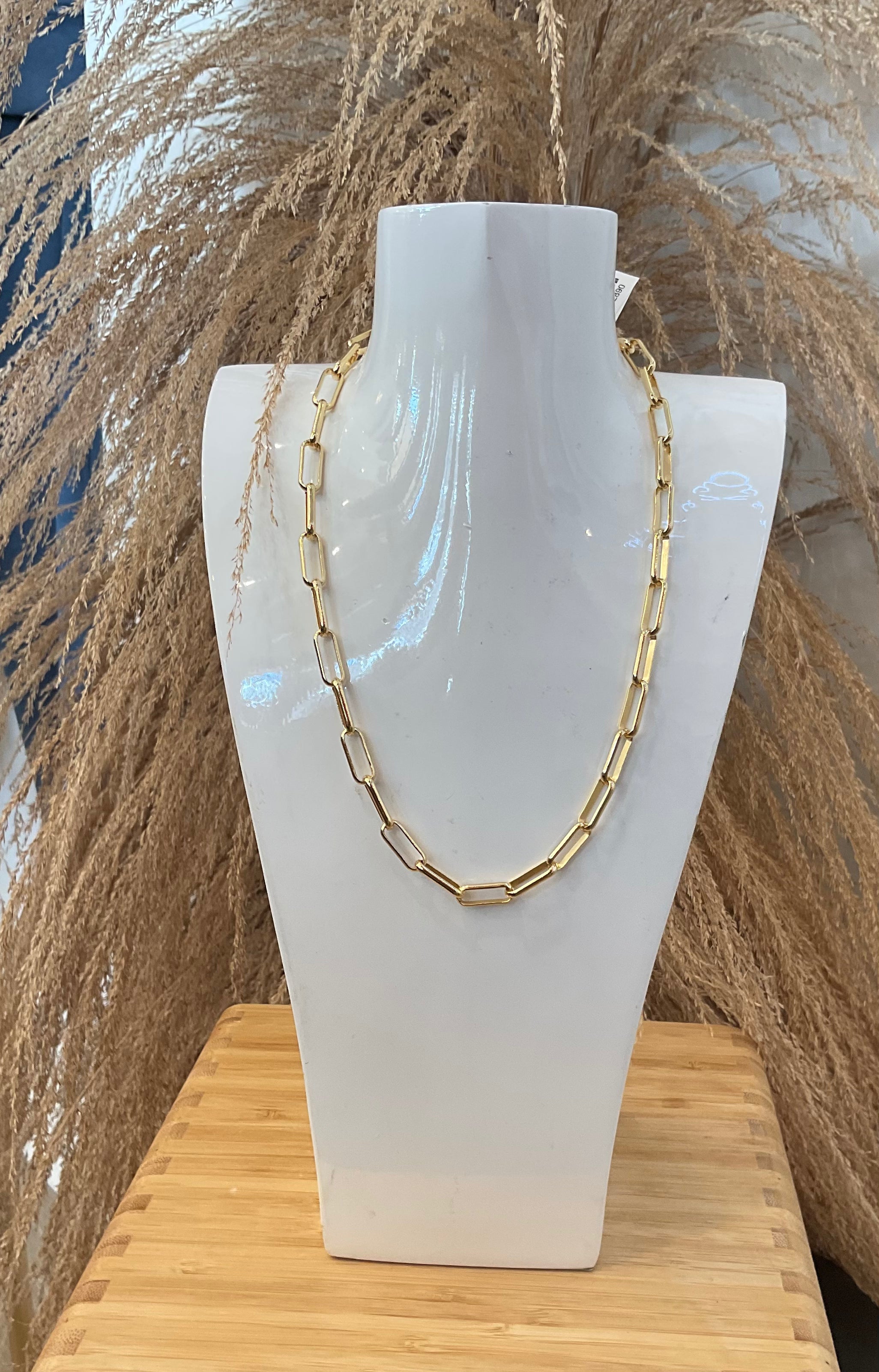Paperclip chain necklace with a magnetic clasp. So dang convenient and easy to put on. No more bothering with the clasps and your nails fighting against ya! These are so cute to have to layer with other necklaces stacks or even add charms to.