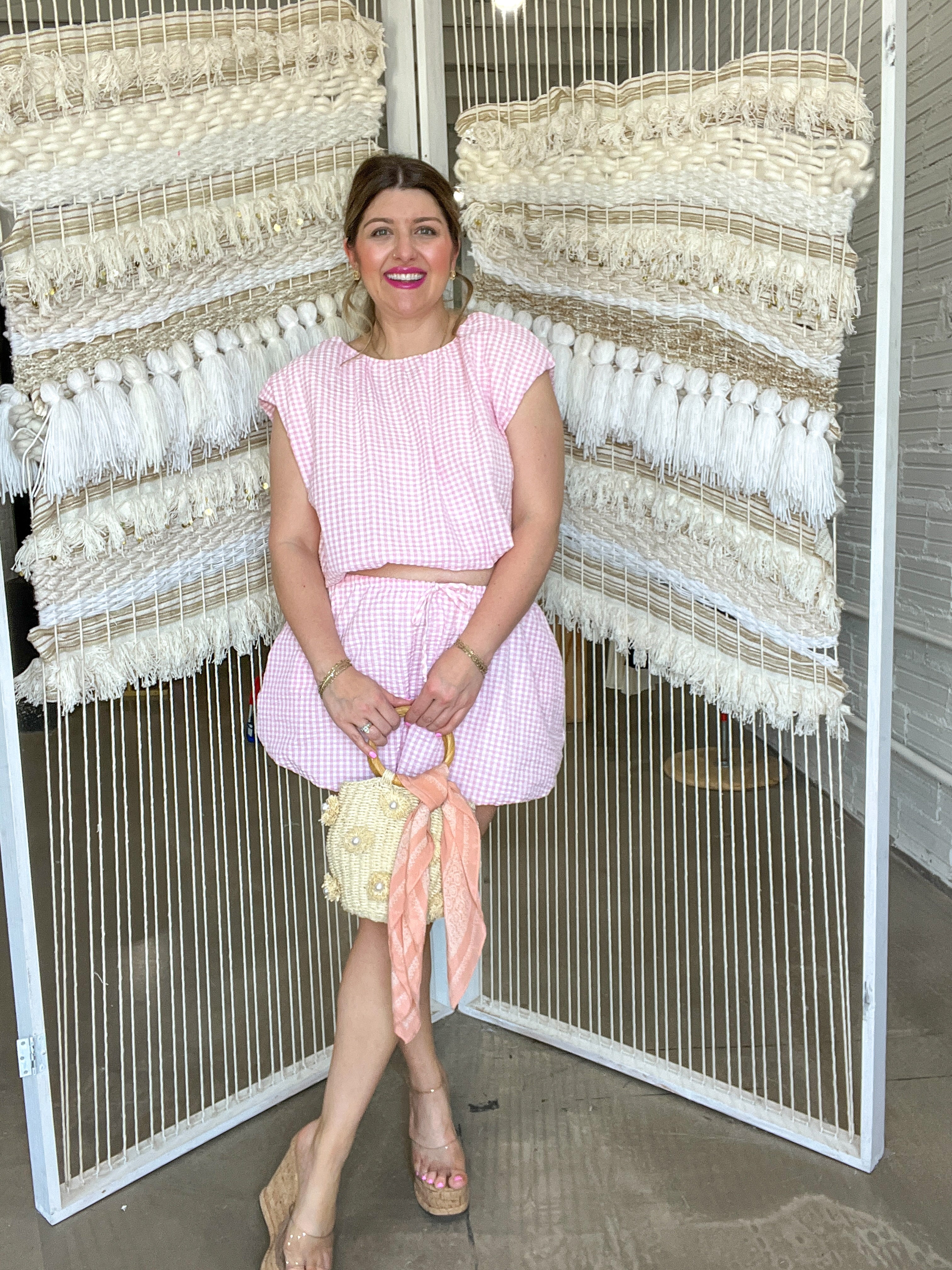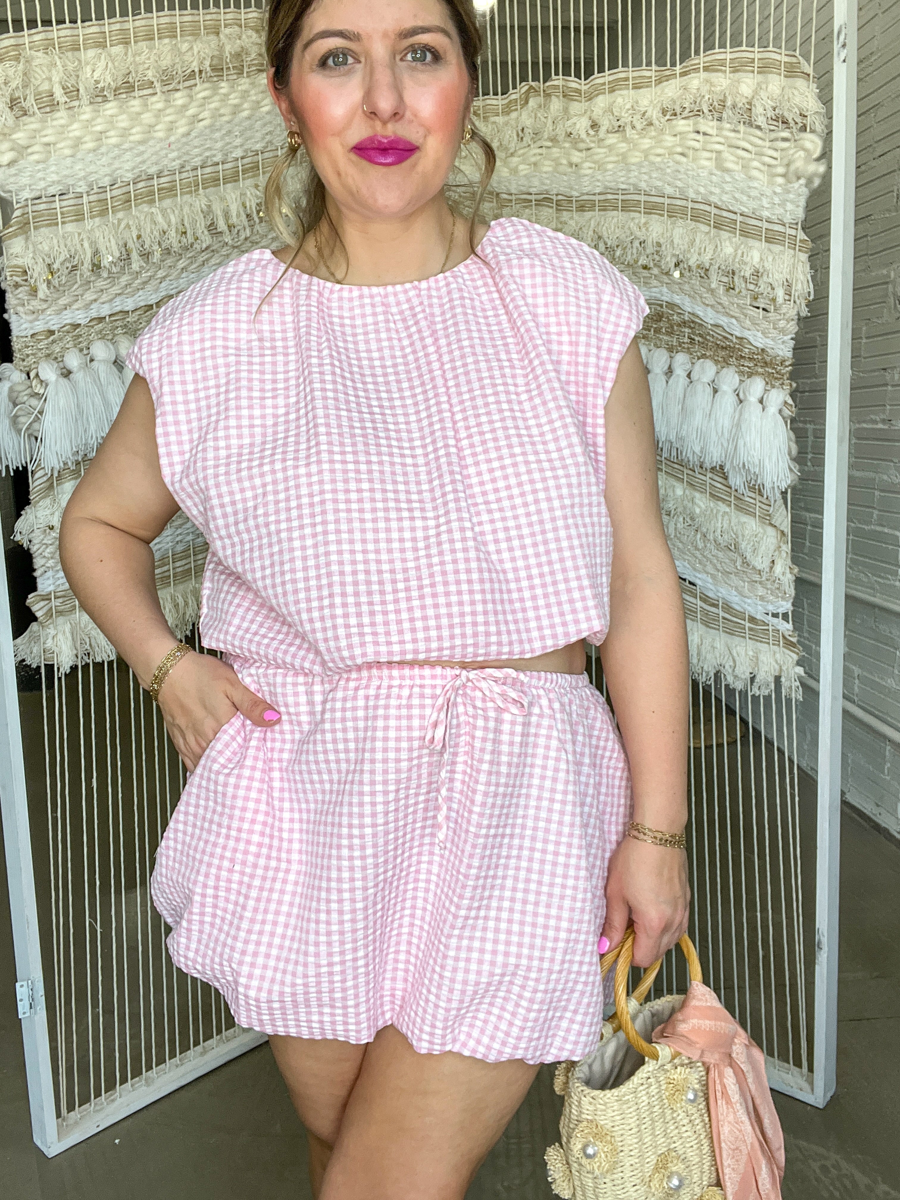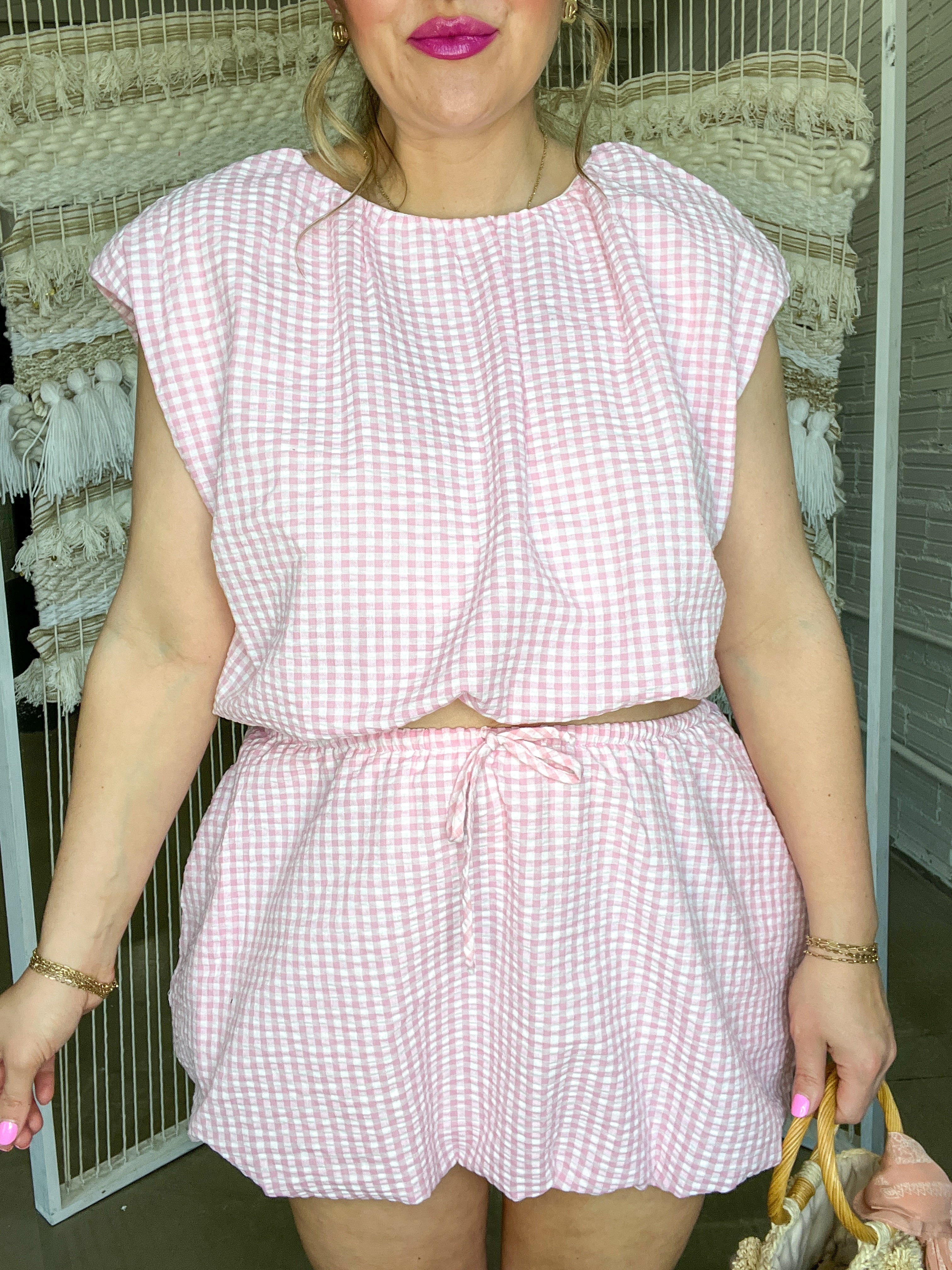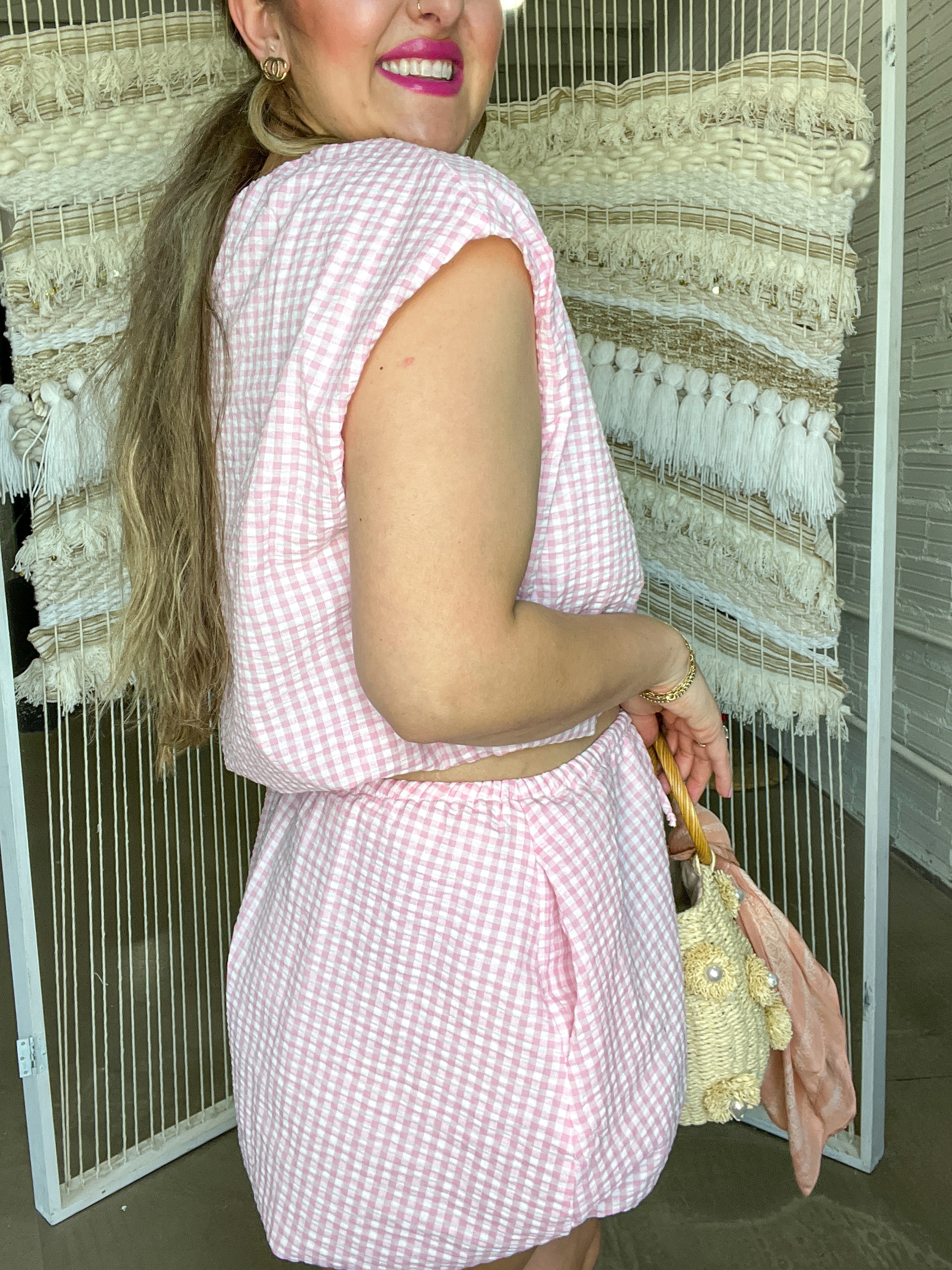 Out of stockGirly Gingham Bubble Mini Skirt - Pink