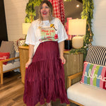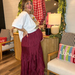 Pleated Hour 3-Tiered Maxi Skirt - Burgundy