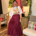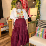 Out of stockPleated Hour 3-Tiered Maxi Skirt - Burgundy