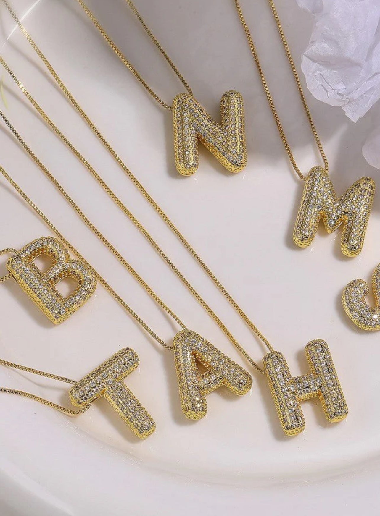 Bubble Initial Necklace | Balloon Letter Necklace | Letter Charm Necklace | Initial Pendant Necklace | Name Necklace | Monogram Necklace | Real Gold Dipped Necklace | Real Gold Plated Necklace | Waterproof & Sweatproof Jewelry | Simple Gold Necklace | Bubble Letter Monogram Necklace