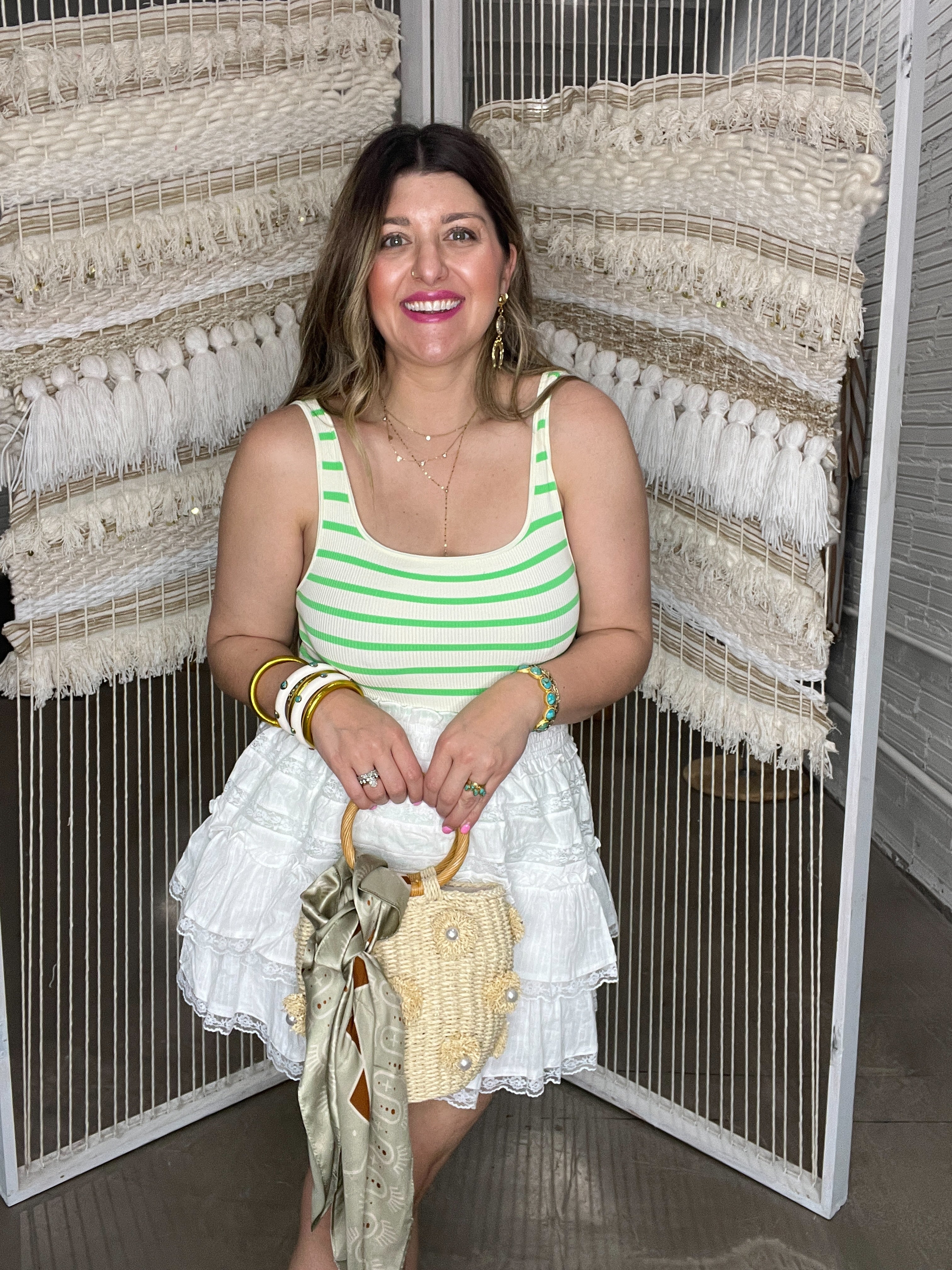 Out of stockRibbed Tank Top Bodysuit - Green Stripes