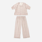 Our Ruffle Pajamas are the perfect blend of cute and cozy. This woven pajama set features a charming ruffle-collar top paired with wide-leg pants designed with an elastic waistband for maximum comfort. So soft and stylish, you’ll want to lounge in them all morning long!