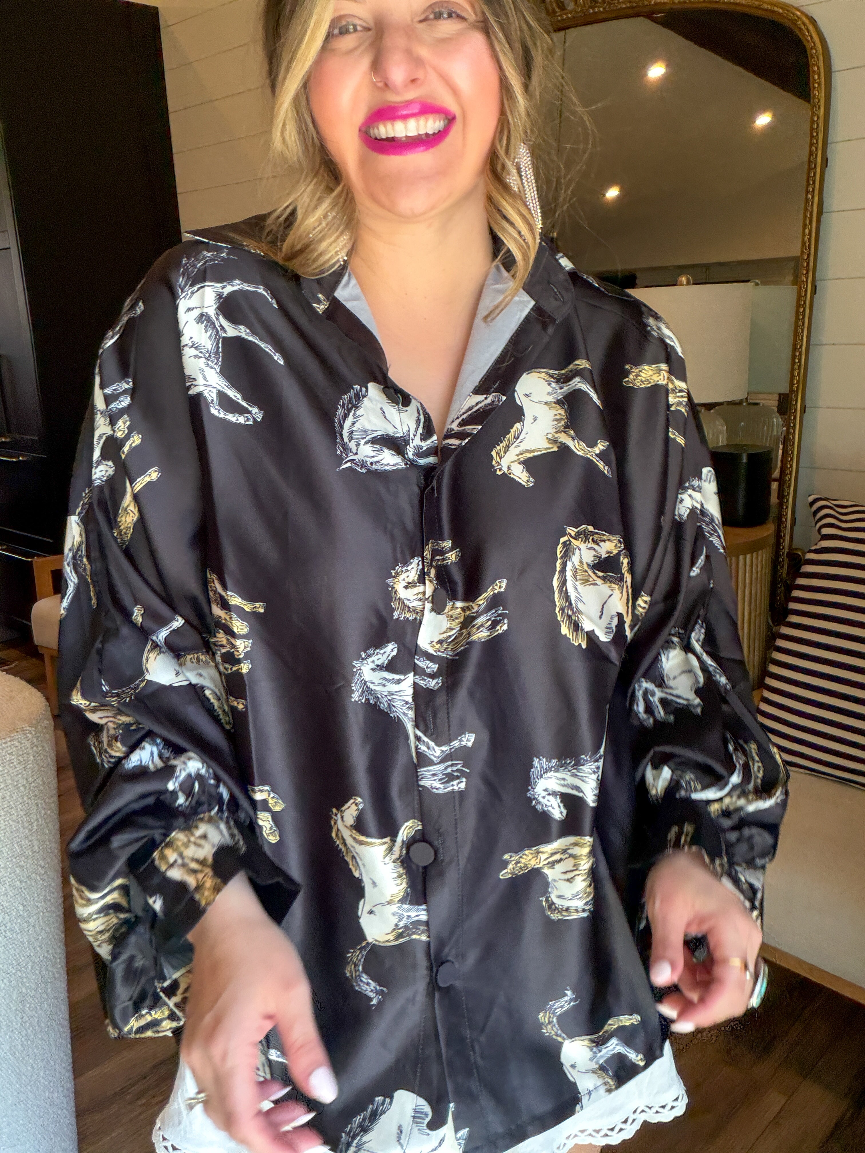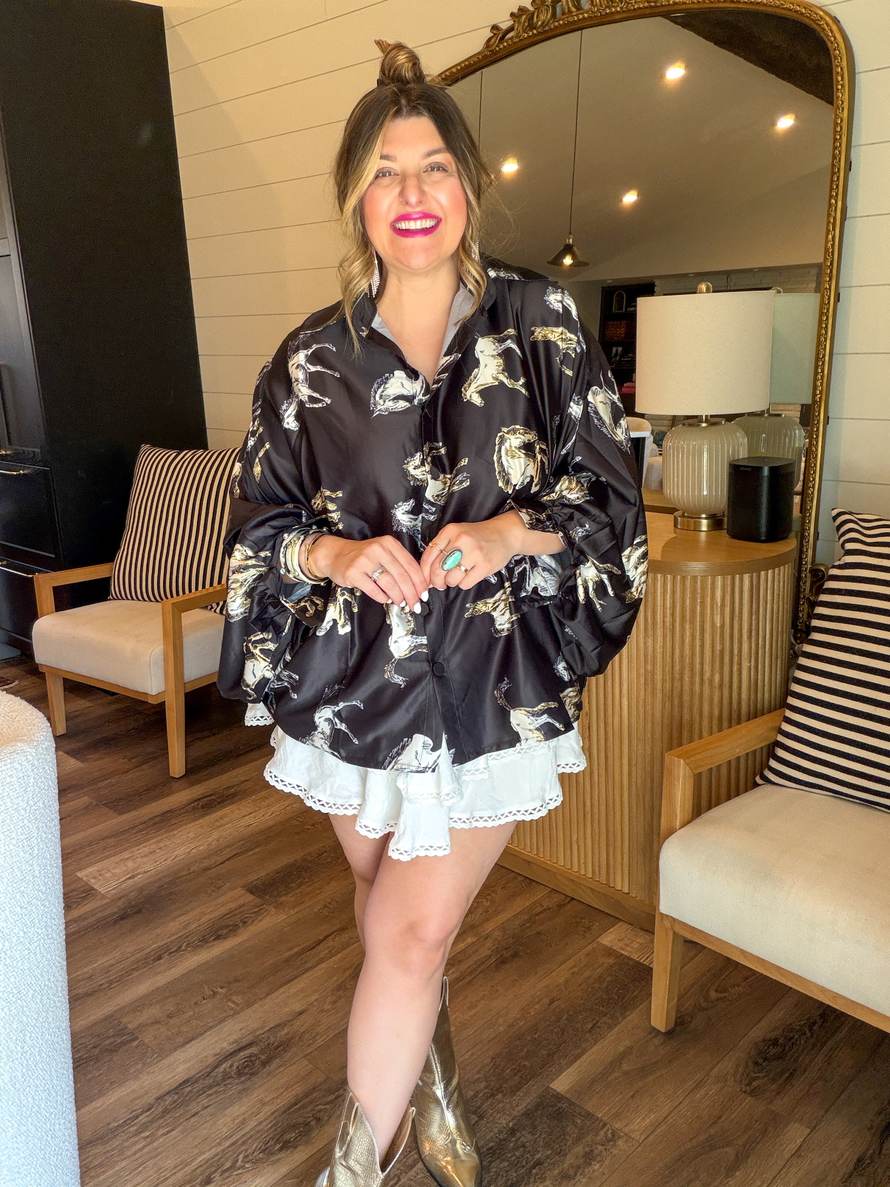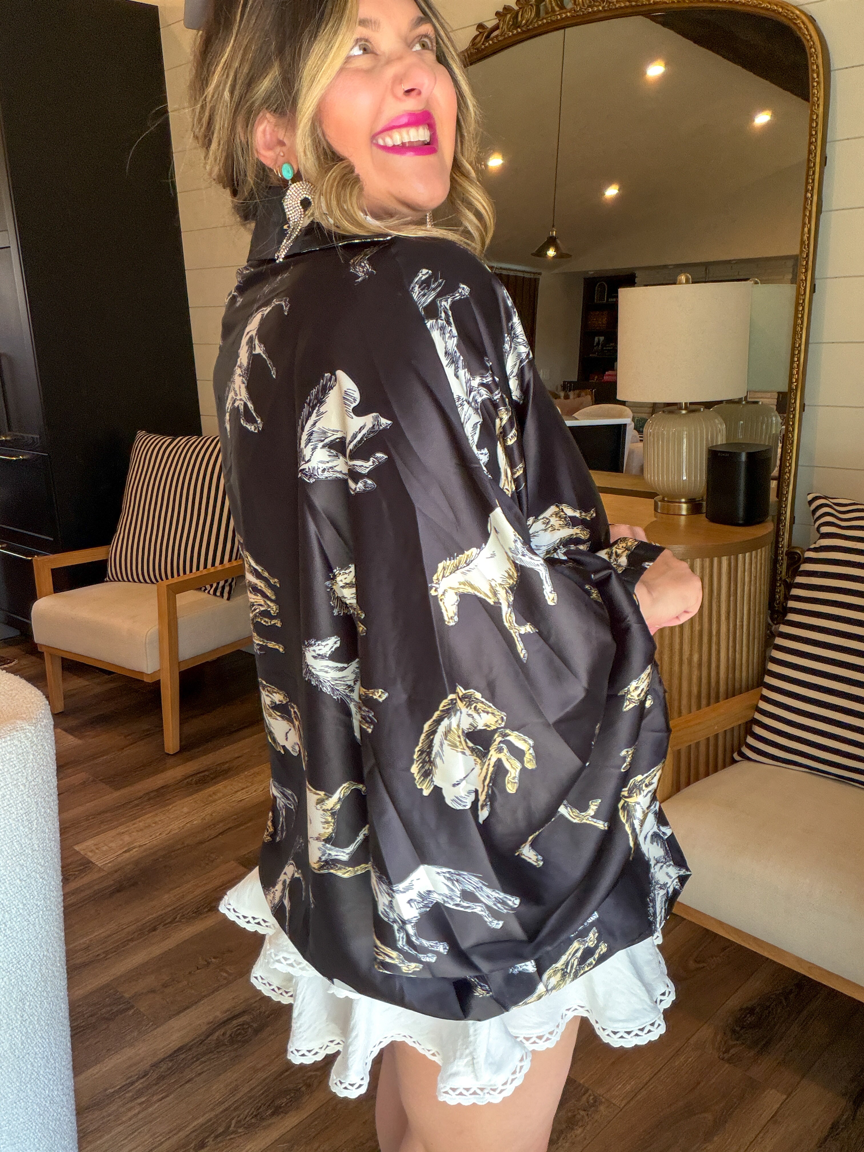 Out of stockRunning Horses Oversized Blouse Top - Black