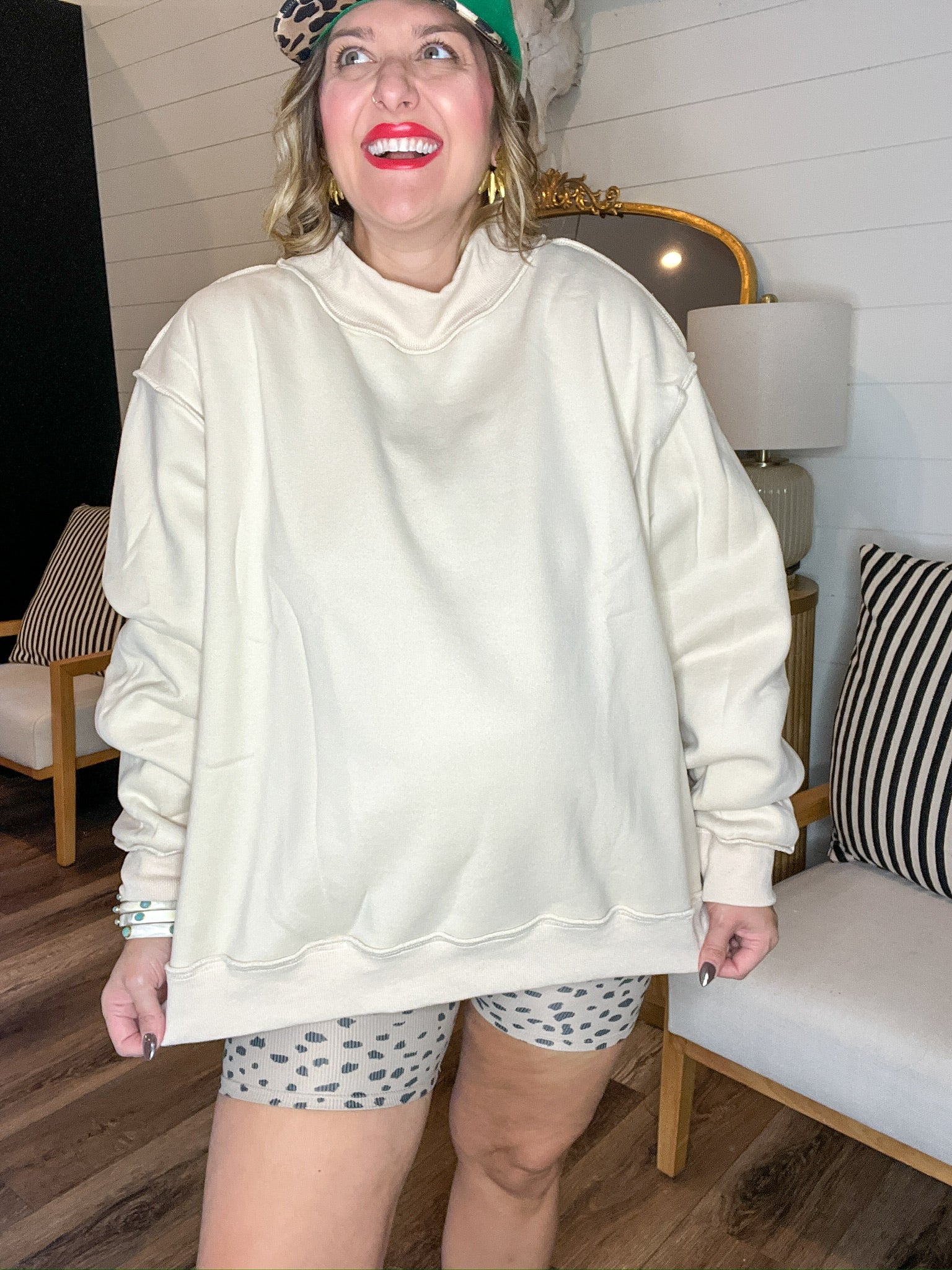 A closet chameleon, this creamy beige beauty is here to prove that minimal can still serve major energy. With its fully reversible design, it’s two luxe layers in one—a rich sand tone on one side, a clean finish on the other. The cozy mock neck gives it that quiet luxury silhouette, while the raw hem edges on the flip side add just enough off-duty edge. Whether you dress it up or down, it’s giving “effortlessly put together” no matter what side you wear.