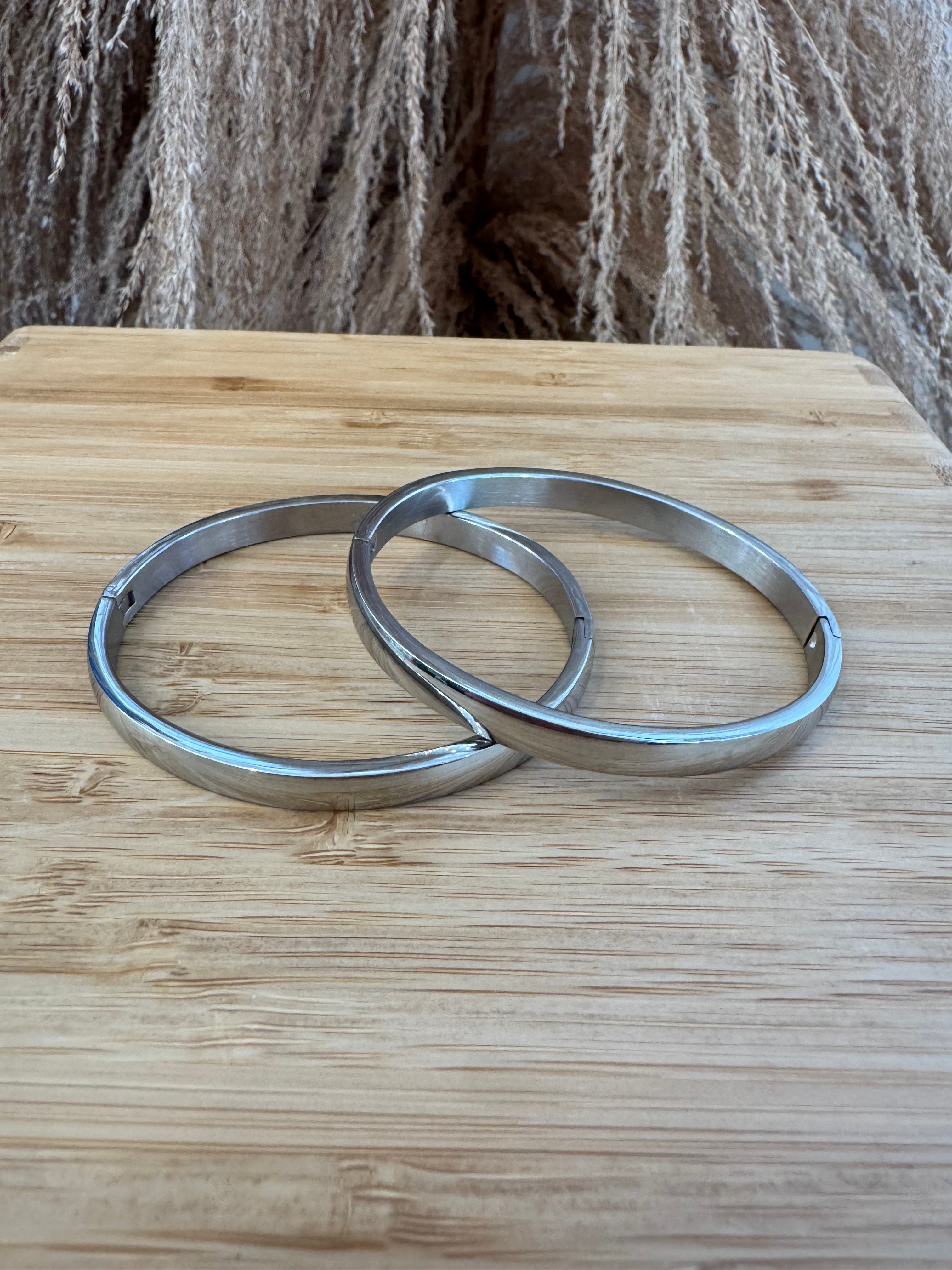 Stainless steel. Get the luxury look bangles with this unique style. Opens with a hinge style and magnetically closes.