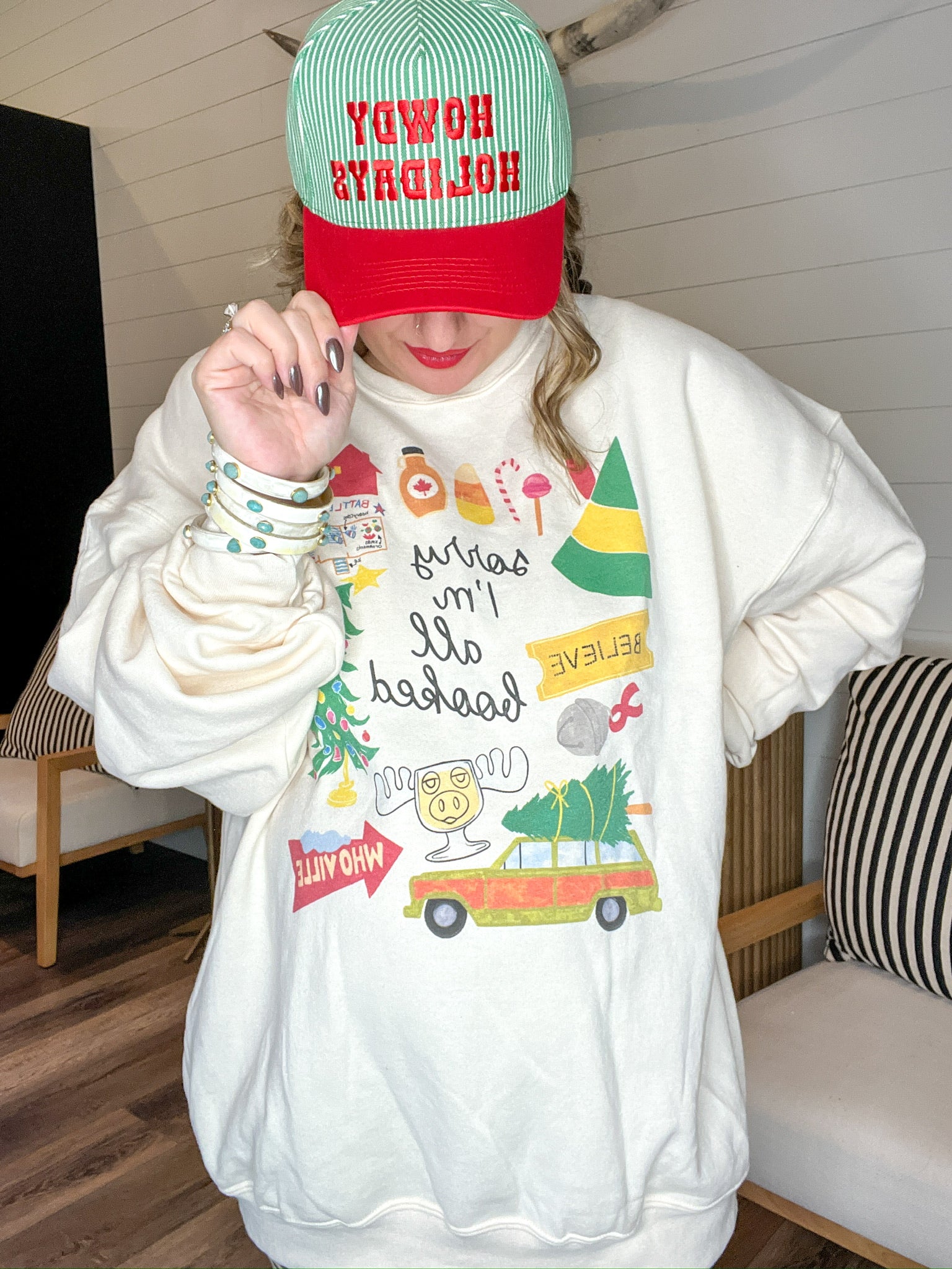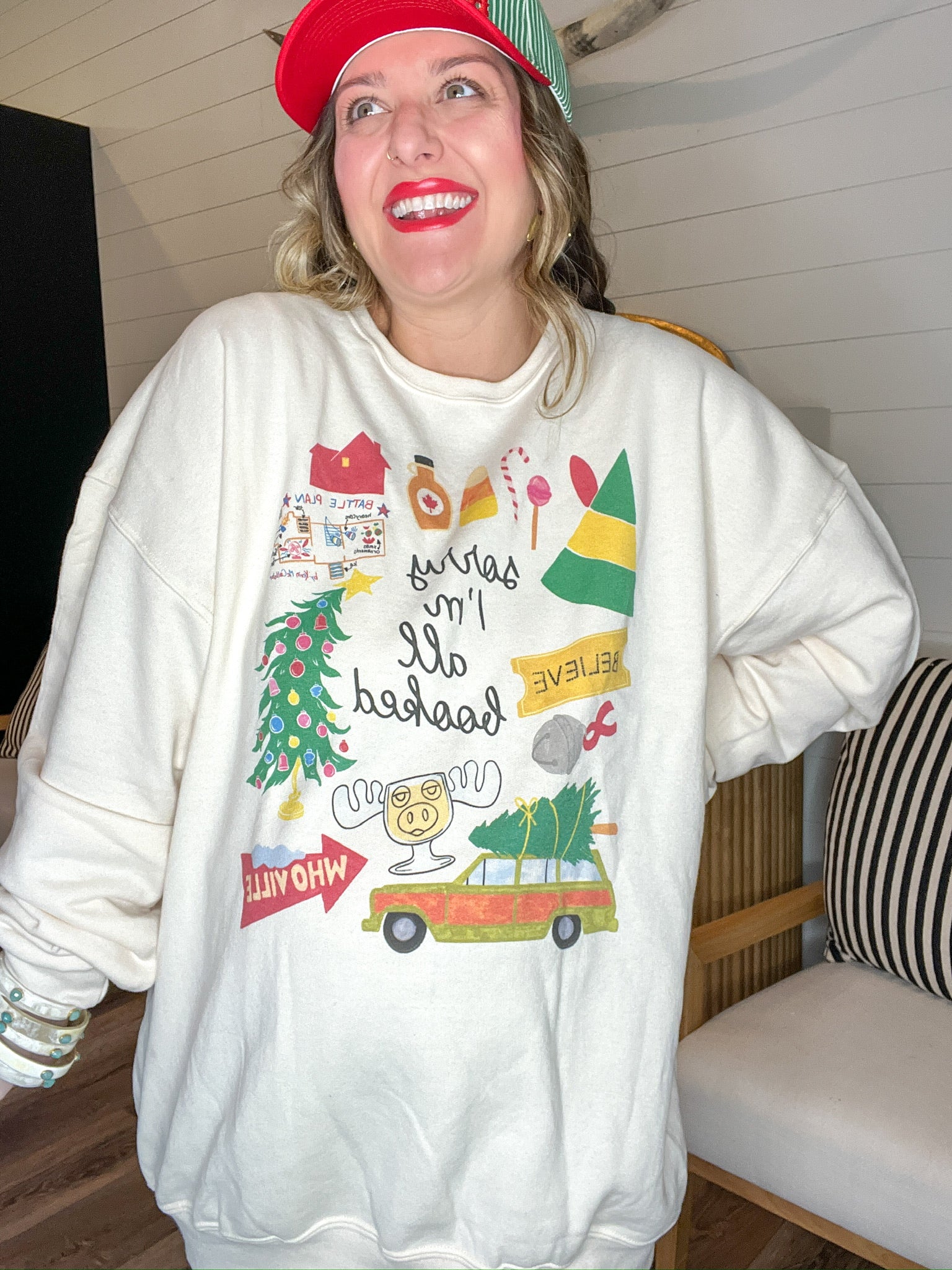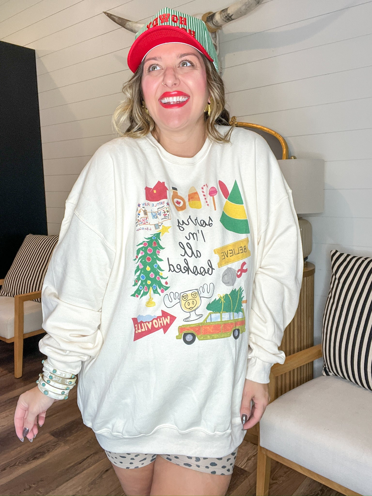 Deck the halls? Babe, I'm booked. From "Who-ville" pit stops to tree trimming + cookie tasting, this sweatshirt says it all so you don't have to. With nostalgic Christmas icons + cheeky lettering, it's your go-to for holiday parties, Target runs, or cozy cocoa nights.