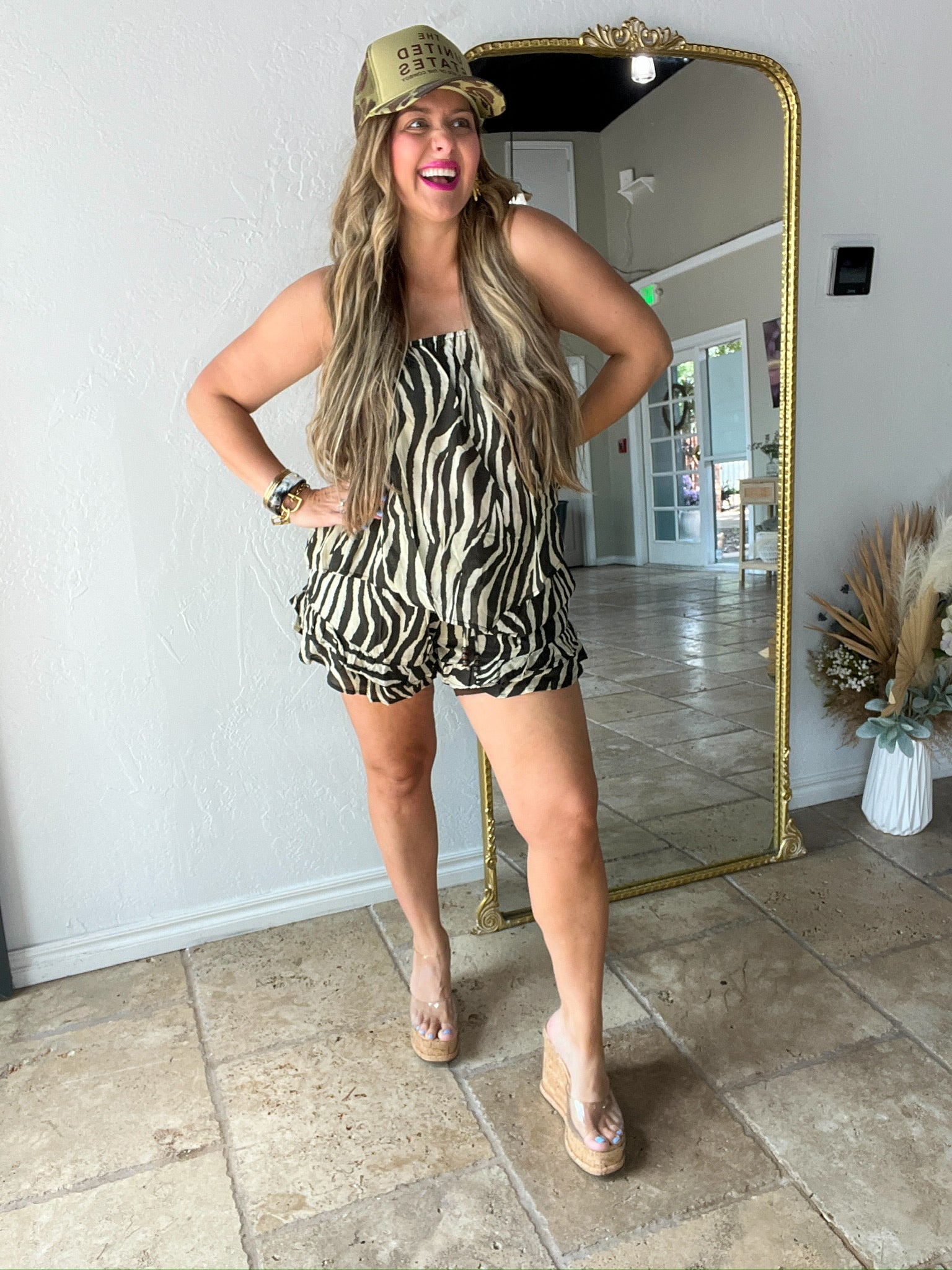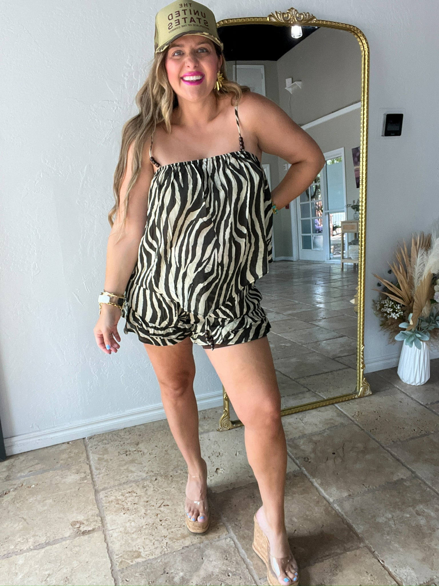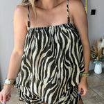 Wild at heart and easy on the skin. The Zevra Cami from Spell brings a playful edge to everyday styling with its zebra-inspired print, lived-in charcoal tones, and floaty silhouette. It’s equal parts cool and carefree, made for sunny day lounging or late night layering.