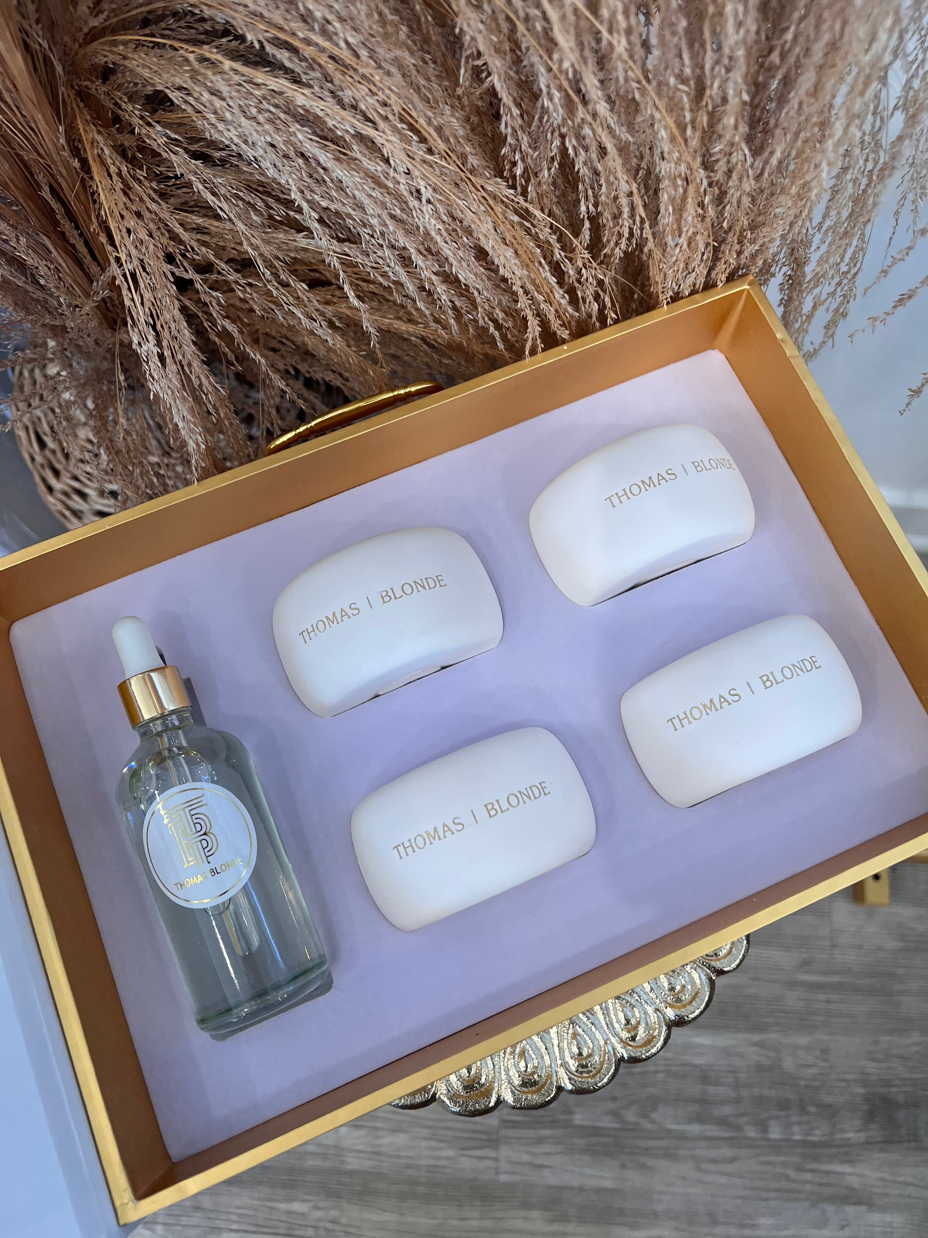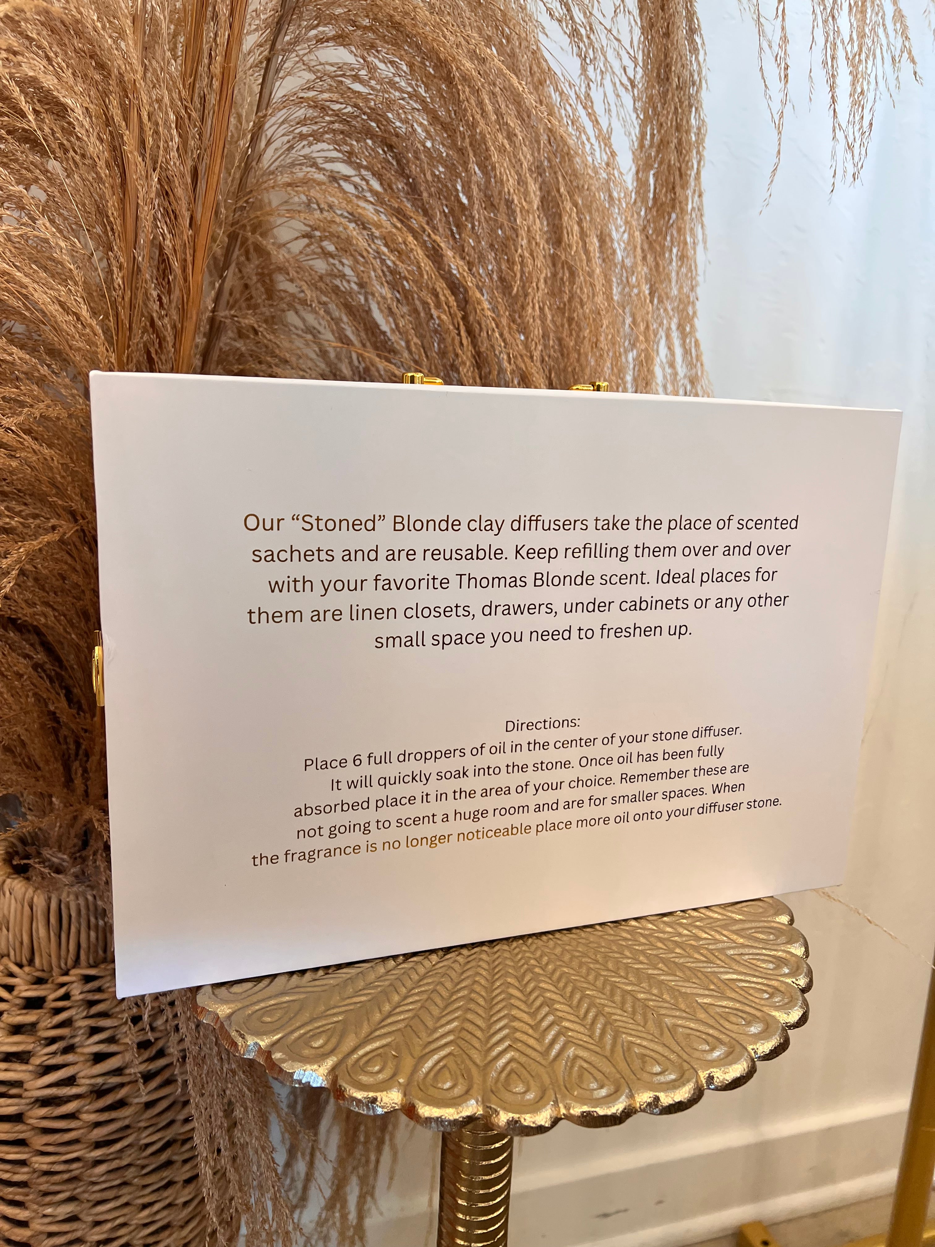 Our "Stoned" Blonde clay diffusers take the place of scented sachets and are reusable. Keep refilling them over and over with your favorite Thomas Blonde scent. Ideal places for them are linen closets, drawers, under cabinets or any other small space you need to freshen up.