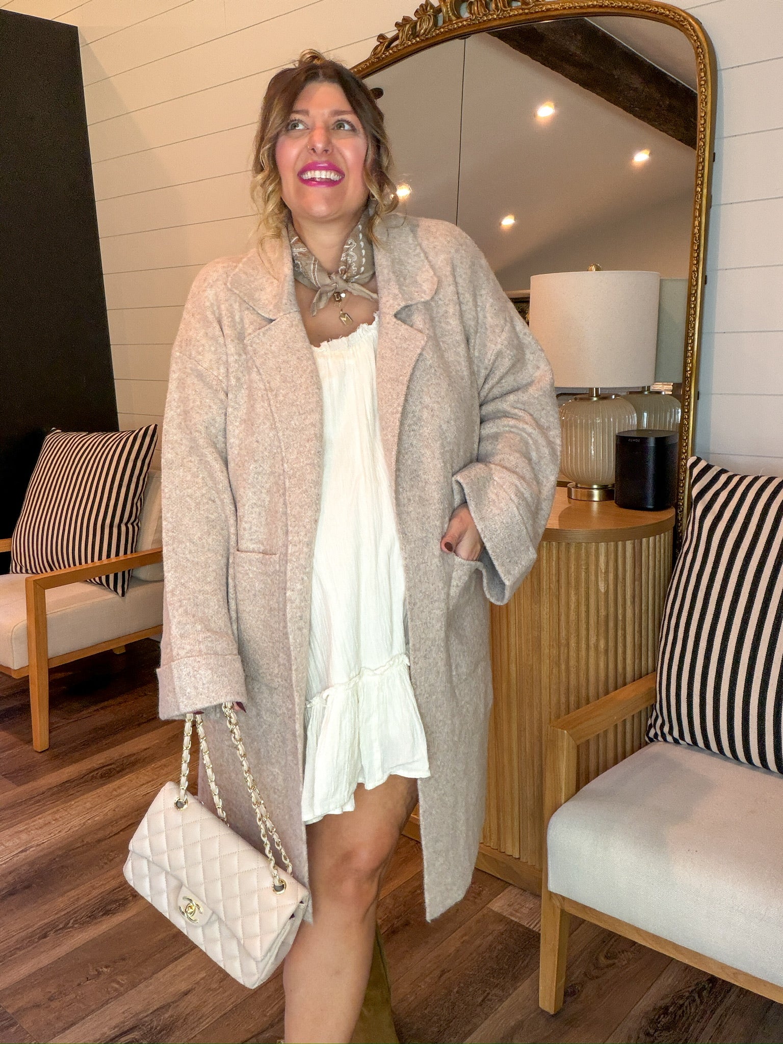 Toss it over a basic tee, a turtleneck, or a silky slip dress. Add boots, sneakers, or slippers- it's that versatile.