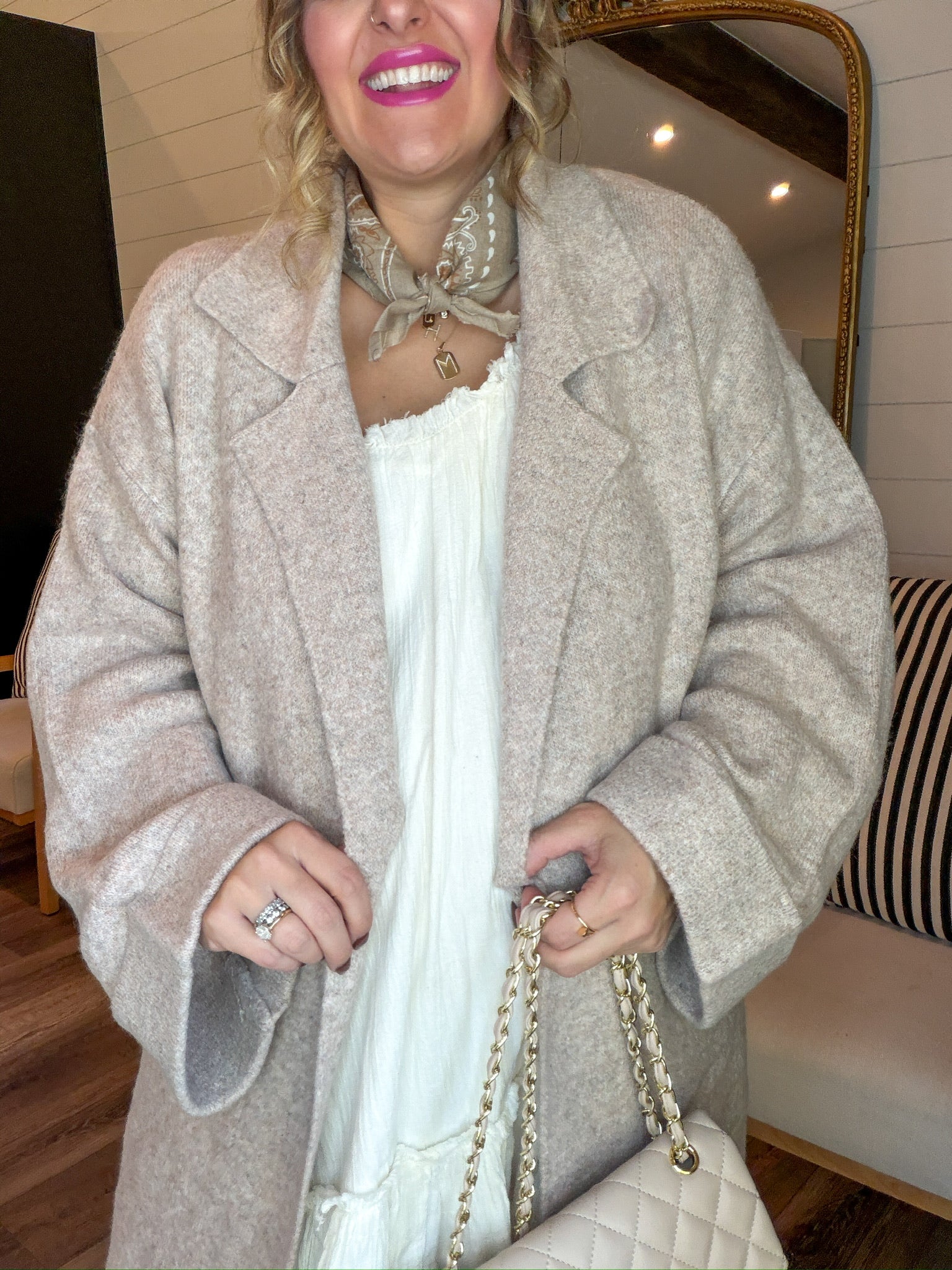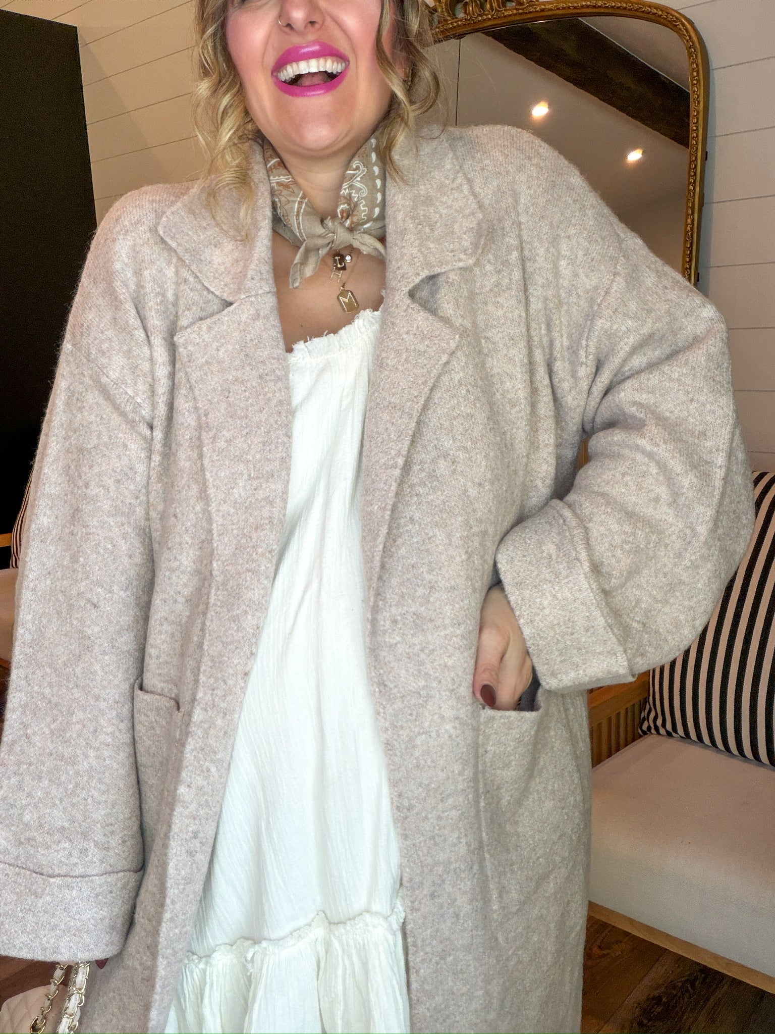 - Patch pockets for practicality + coziness