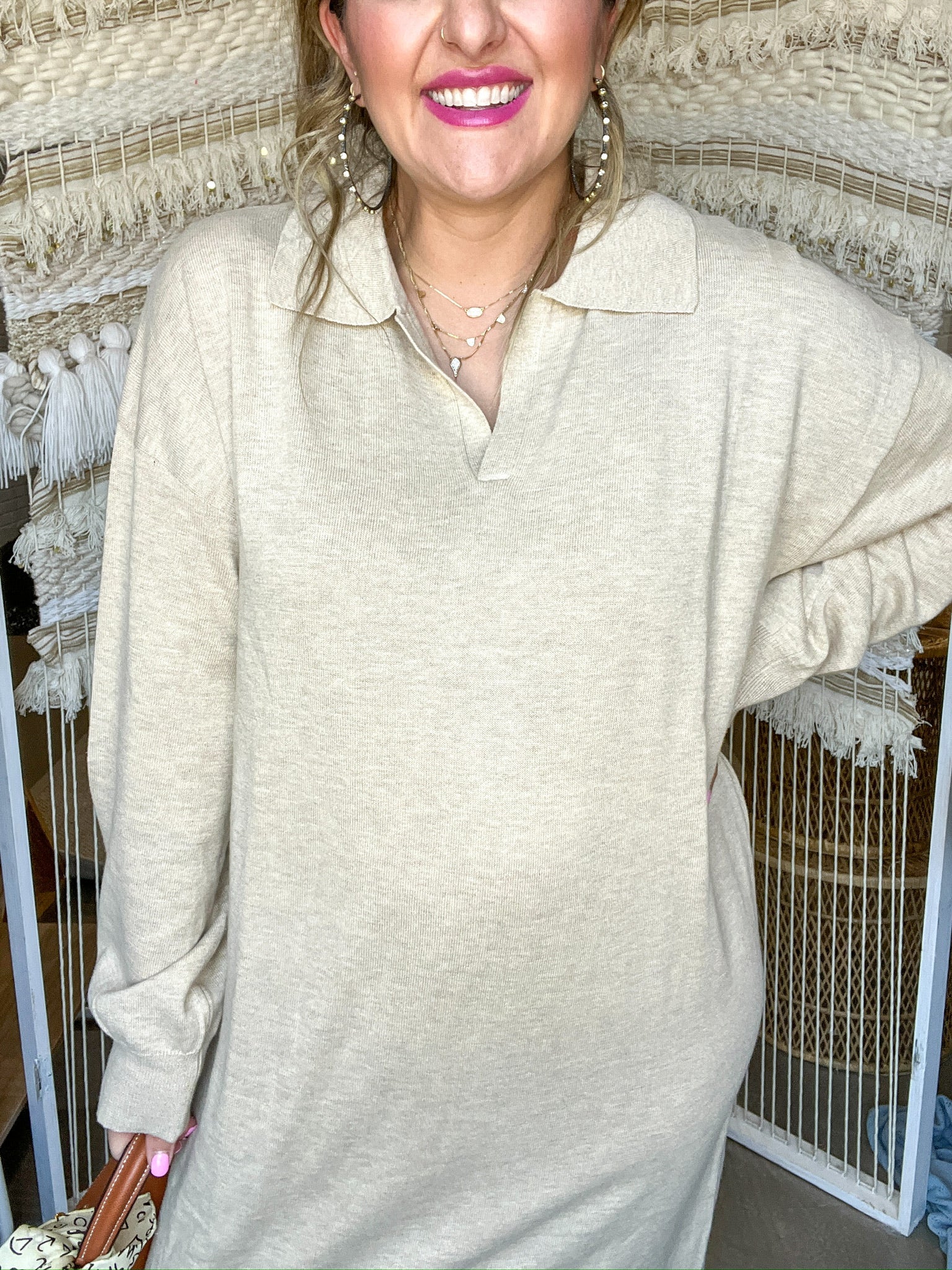 Channel your inner cool-girl twin with The Hallie Dress—a sporty-meets-soft sweatshirt dress with a preppy collar and casually oversized fit. Inspired by Hallie Parker from The Parent Trap, it’s your go-to for everything from lake weekends to lounging at home. Bonus? It’s from the same brand that brought you the beloved Piper Cardigans—so the comfort factor is a 10/10.