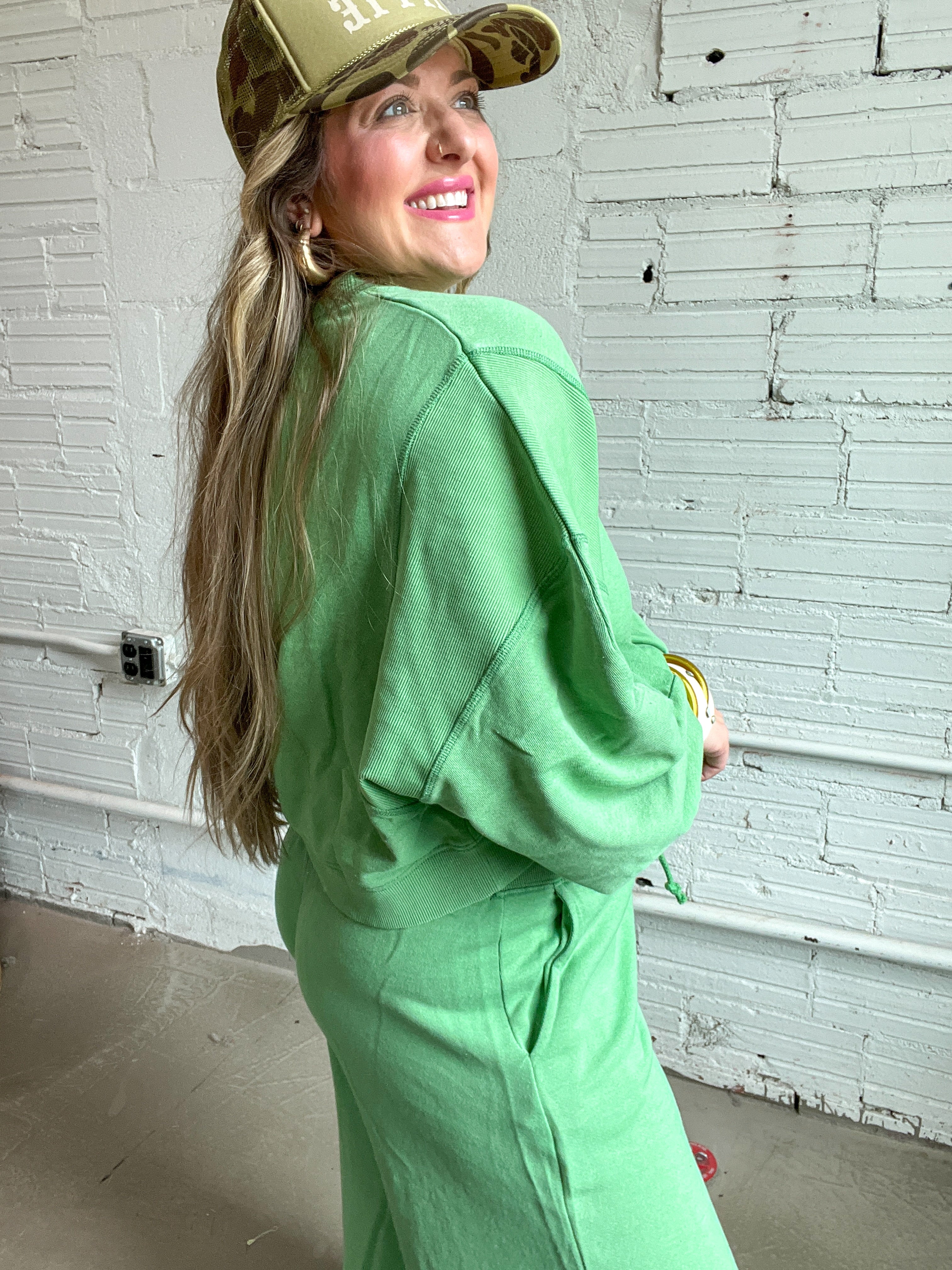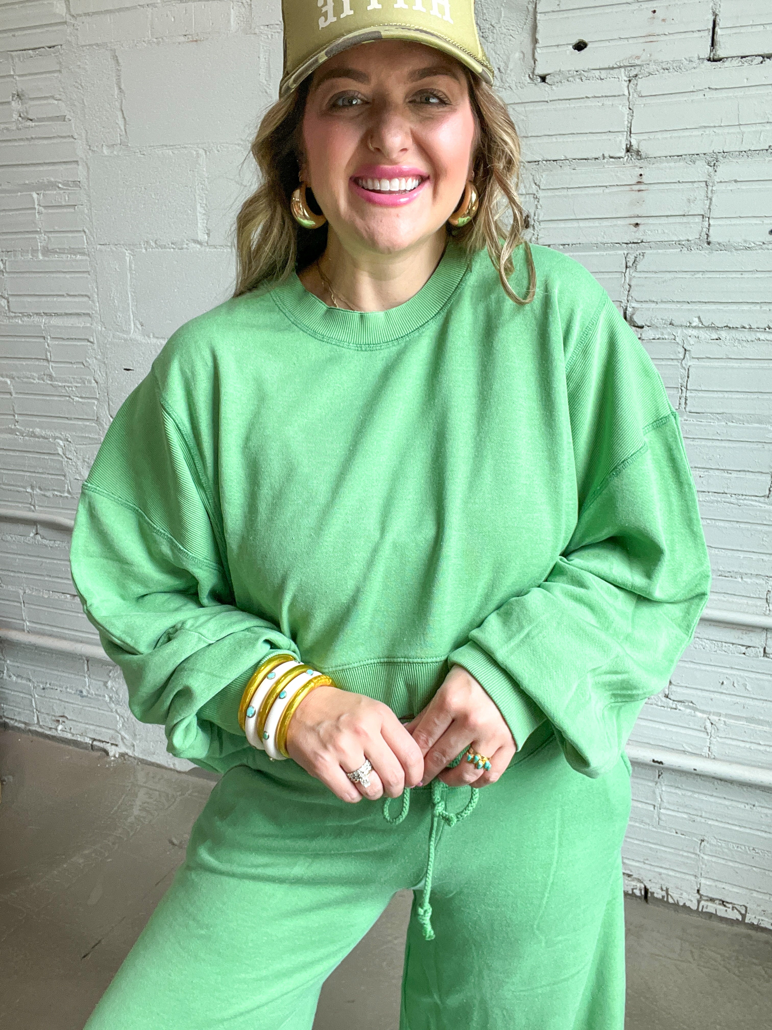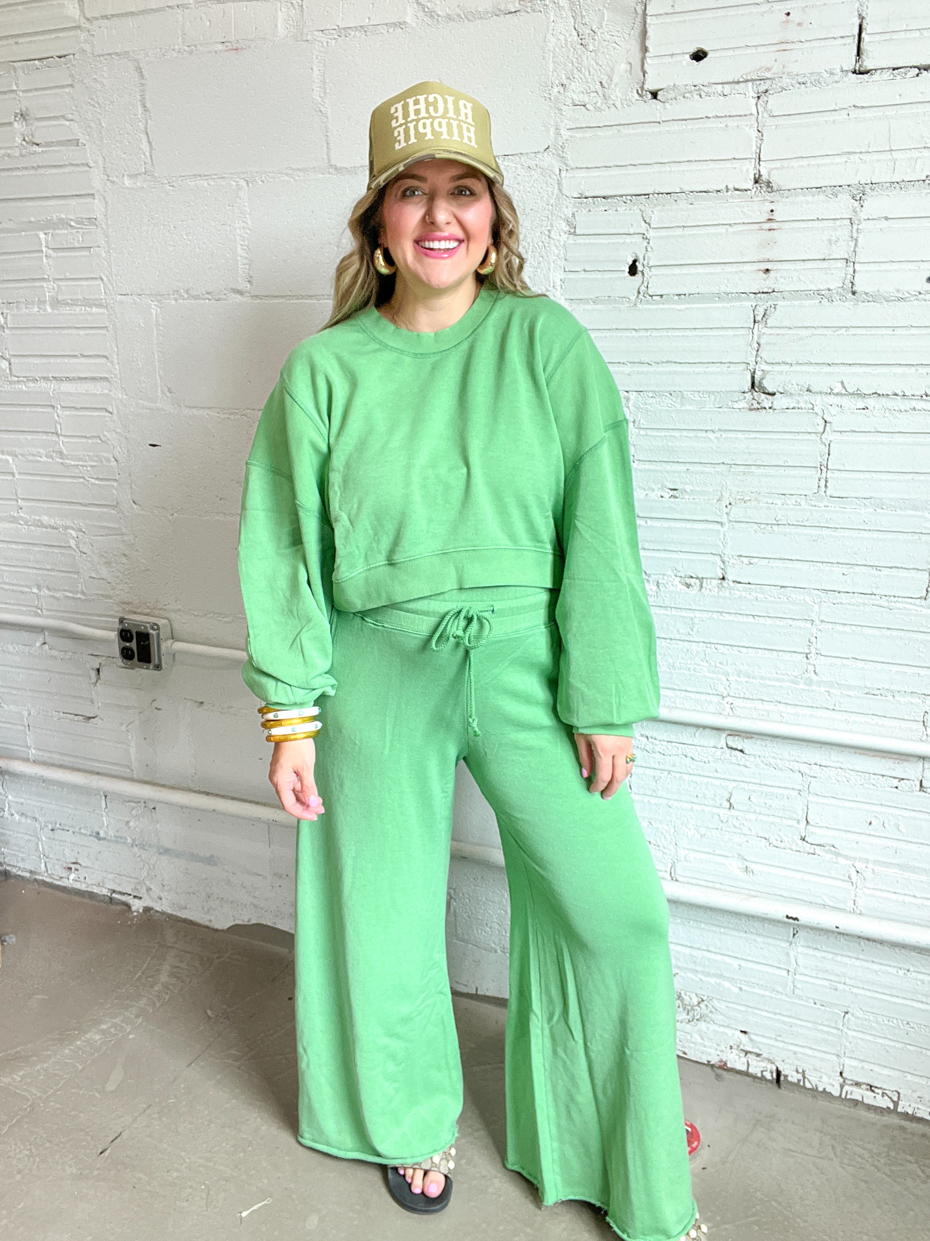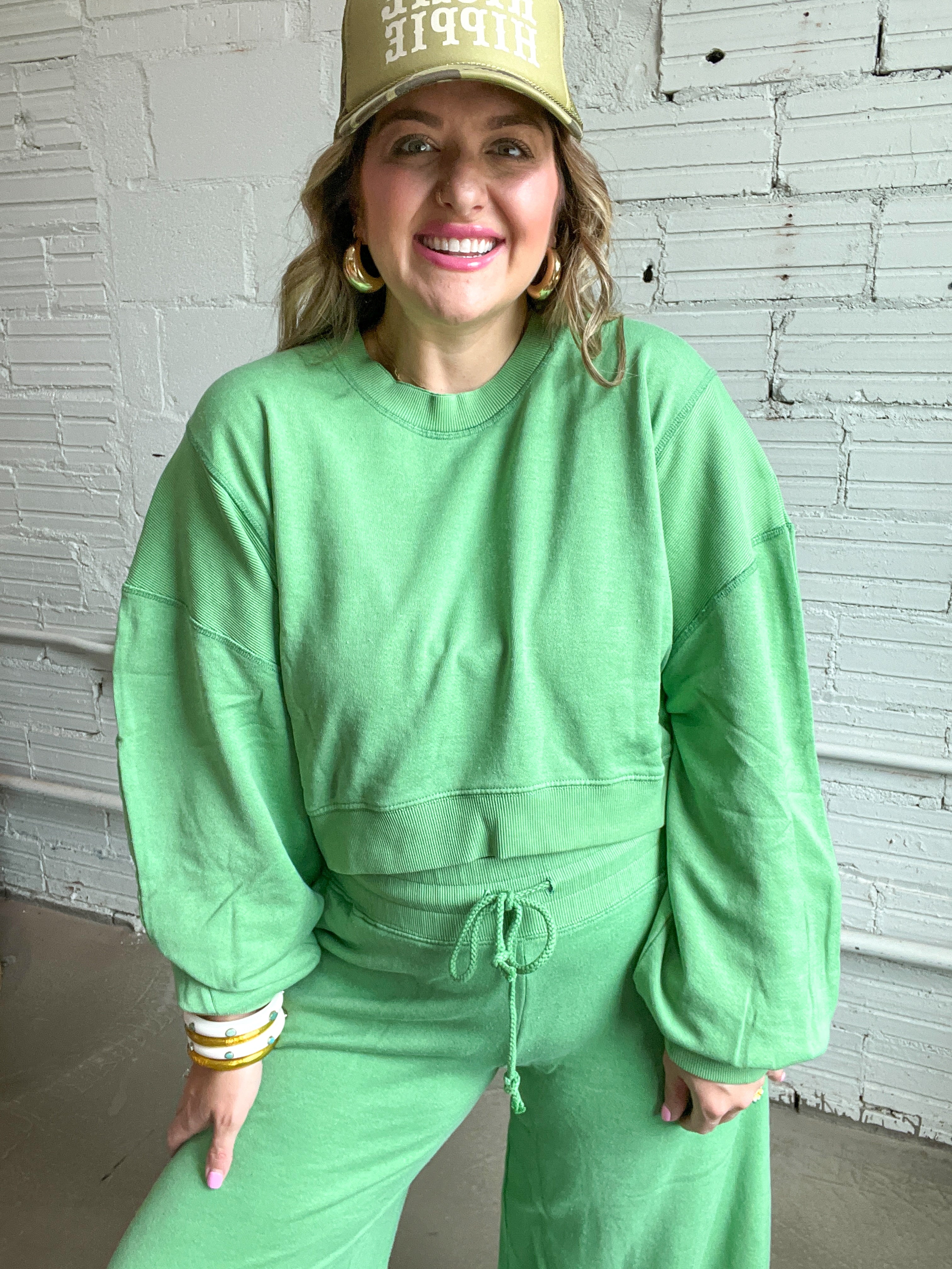 A little sporty, a little slouchy, and a whole lotta color. The JuiceBox Sweatshirt in vibrant field green is cropped to perfection and made to move with you—whether you’re lounging, layering, or living your best cozy life. Pair it with the matching pants or mix it up with denim and sneaks.