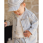 Boxy cotton denim utility jacket with front patch pockets, snap closure, and classic collar—ideal for layering this fall.