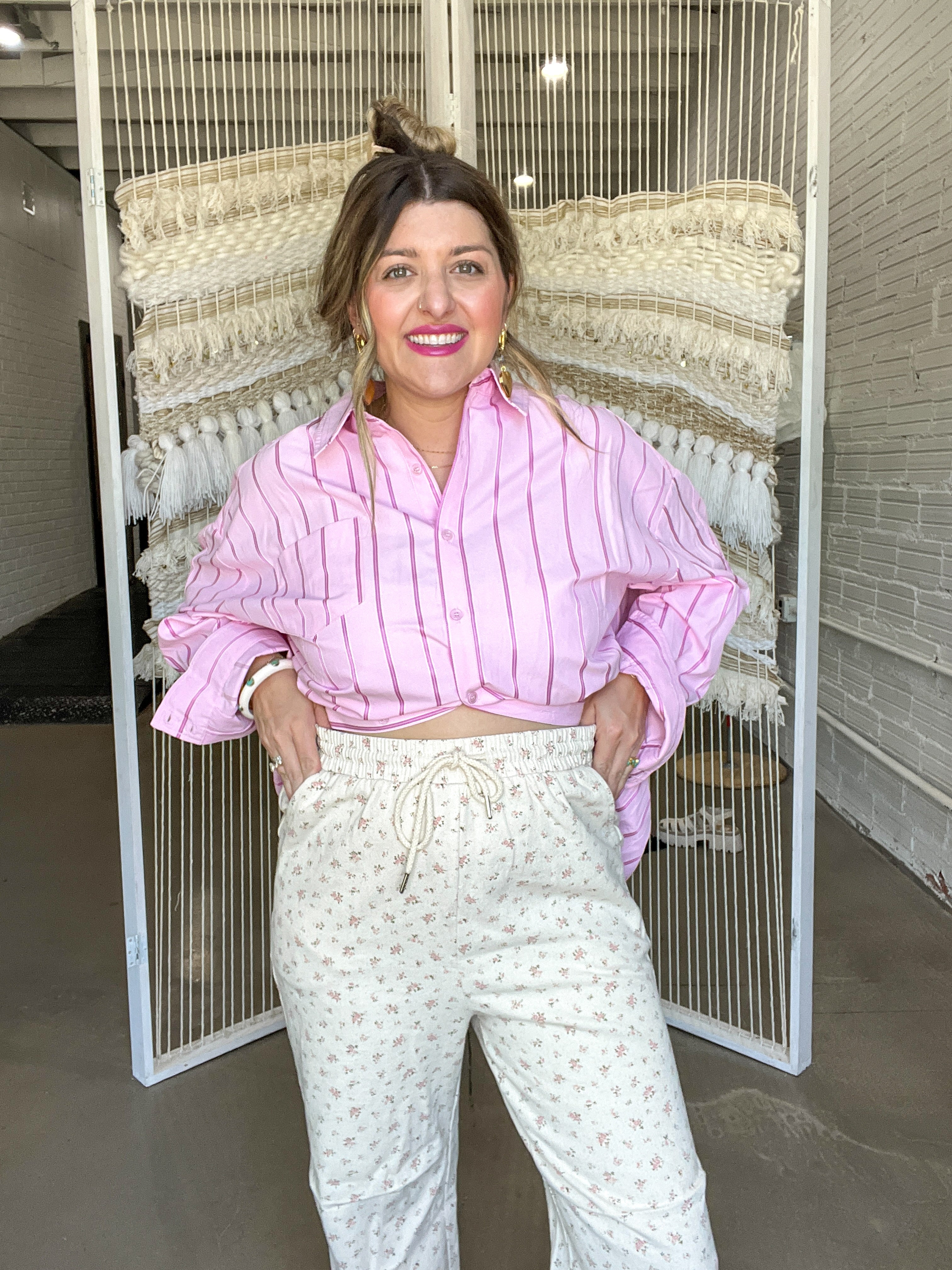 These pants are truly unmatched! They are the softest denim fabric that almost feel like sweatpants. They are high waisted with an elastic waistband and functional drawstring. They have a cute flare at the bottom with a pole that will help cinch them up for a more tailored look! I felt most comfortable in the size medium, because it hugged me in all of the right places, but was still relaxed for comfort! I believe these are running a little bit bigger as I was in the medium when I most normally choose a size large. I say that because these are more high waisted, so my waist line is a little bit smaller than my midsection.