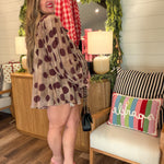 • Playful dot-print pattern in warm brown tones