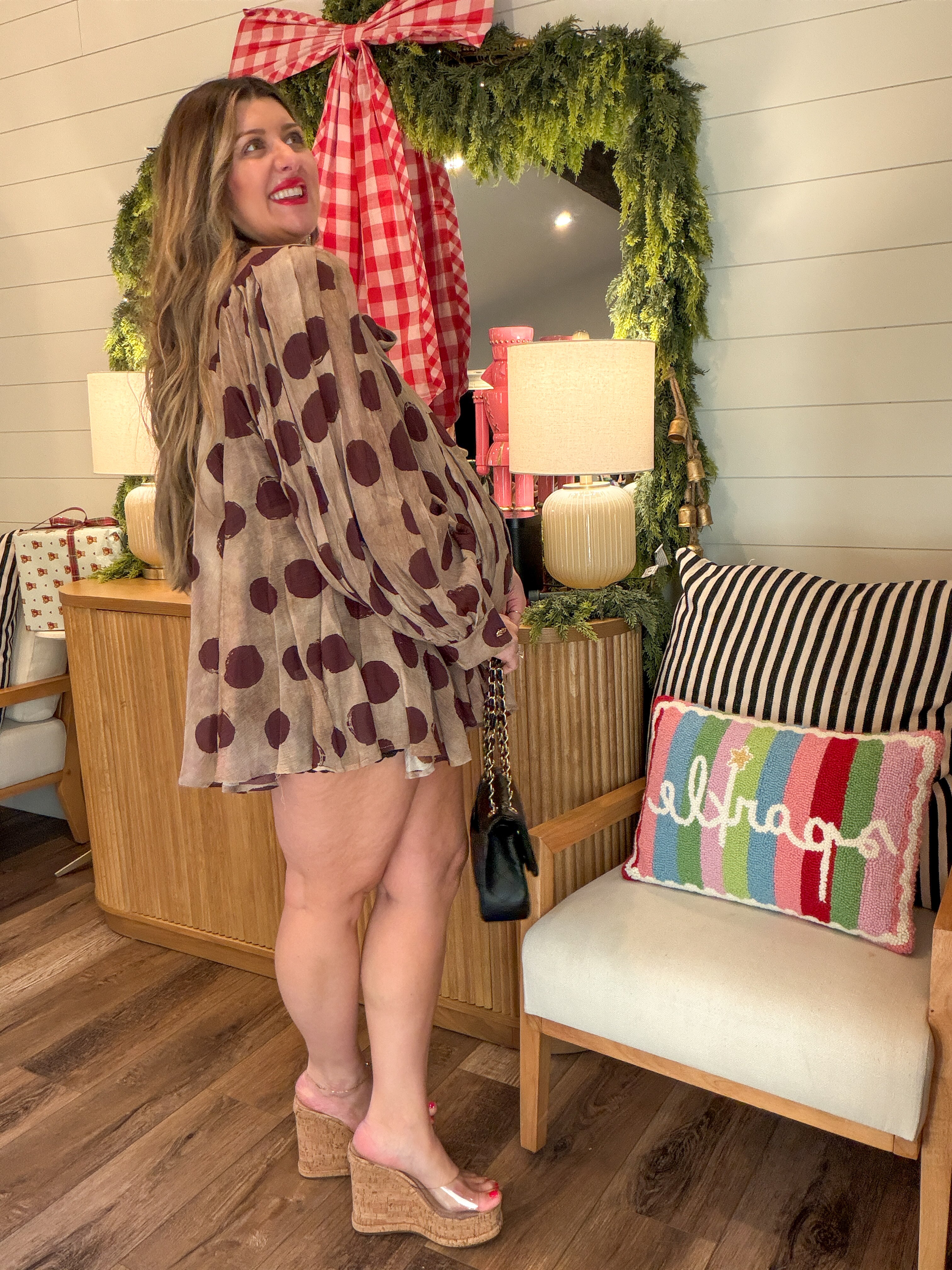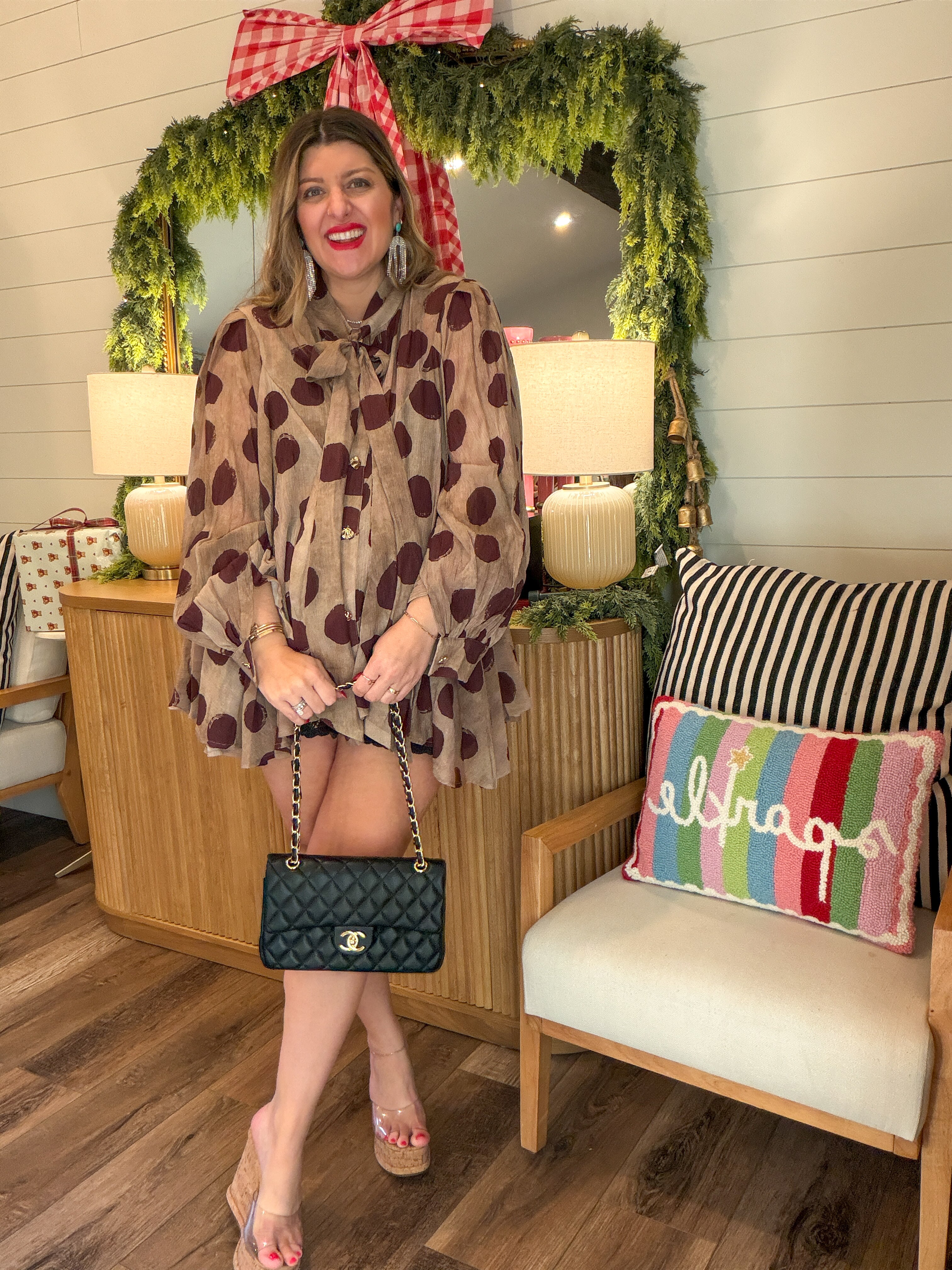 • Paired with a mini skirt + tights for a chic holiday look