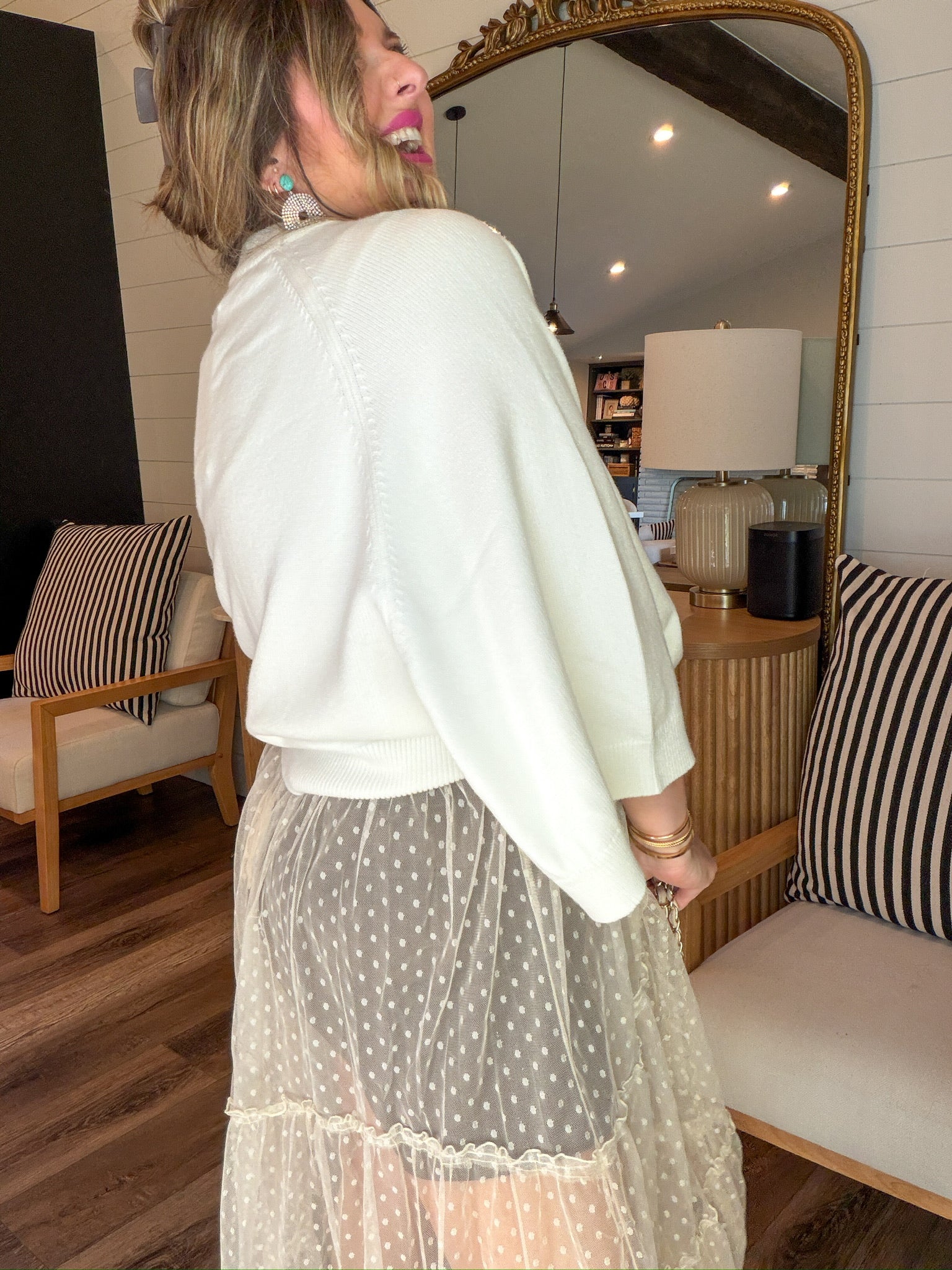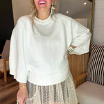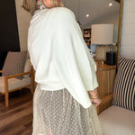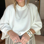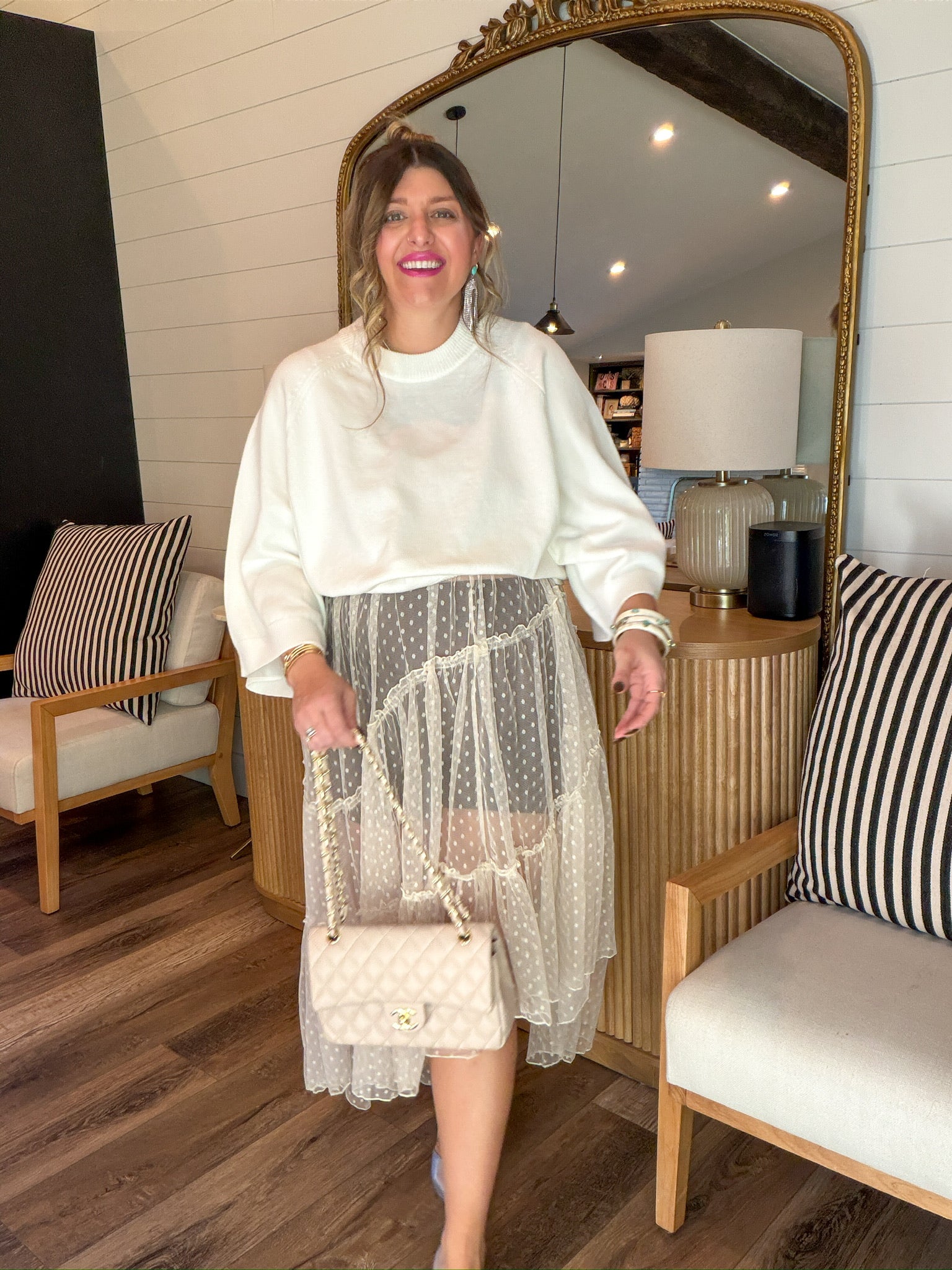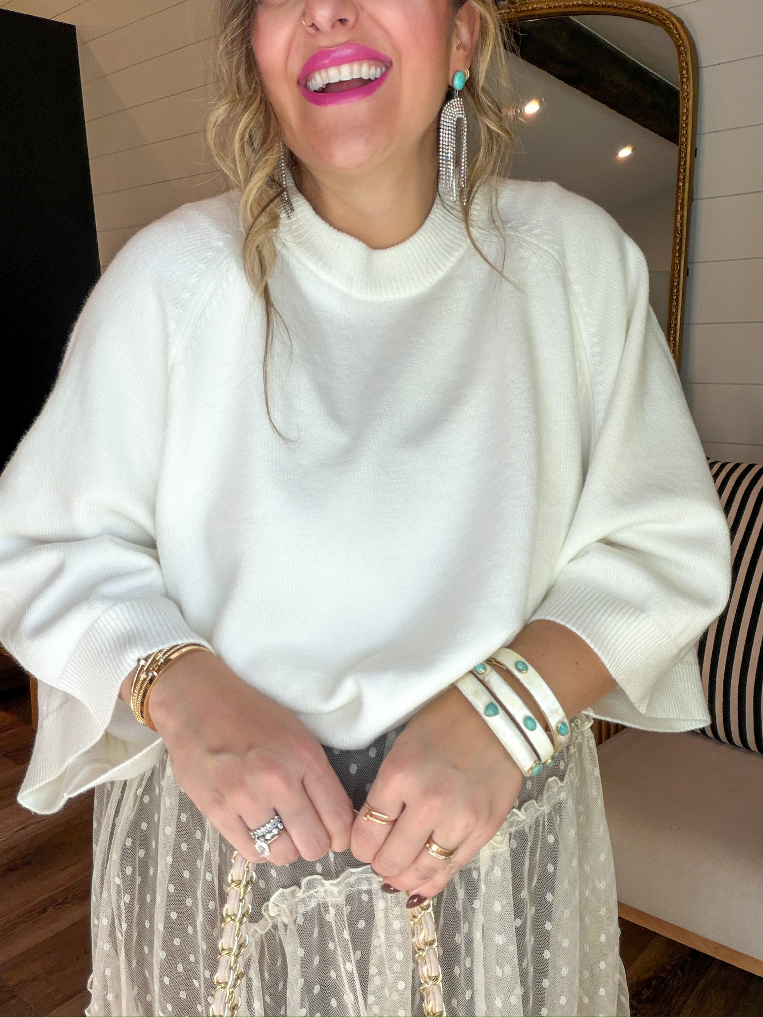 When you want to look angelic but in a “my skincare routine is elite and I meditate now” kind of way. This creamy knit brings soft-lux glow, quiet confidence, and the kind of chic simplicity that makes everyone assume you have weekend plans at a farmers market and a perfectly organized Notes app.